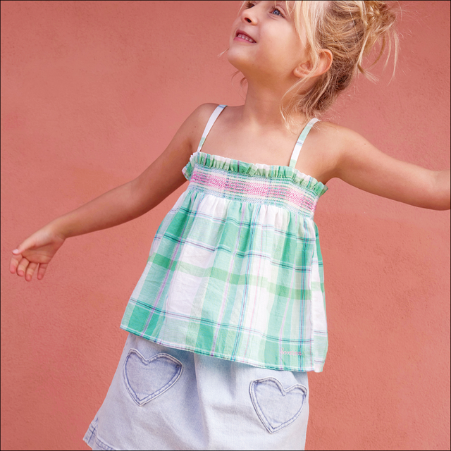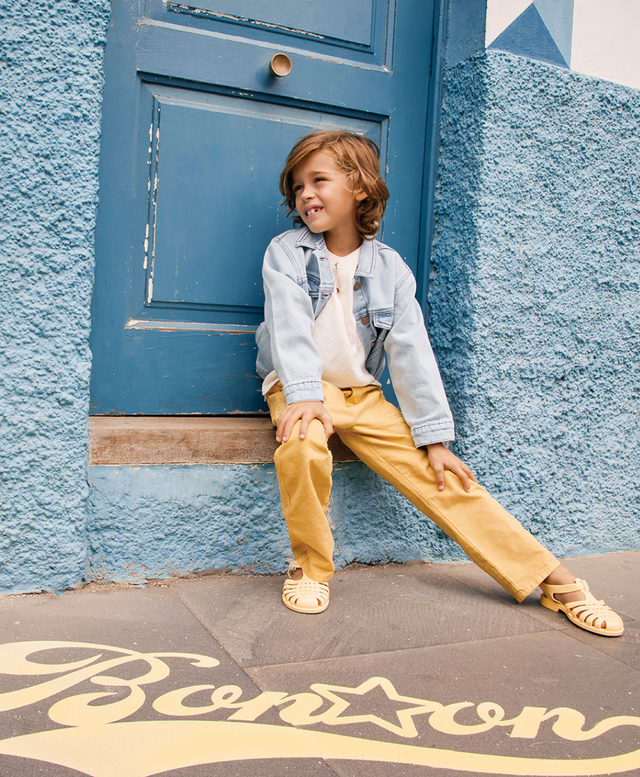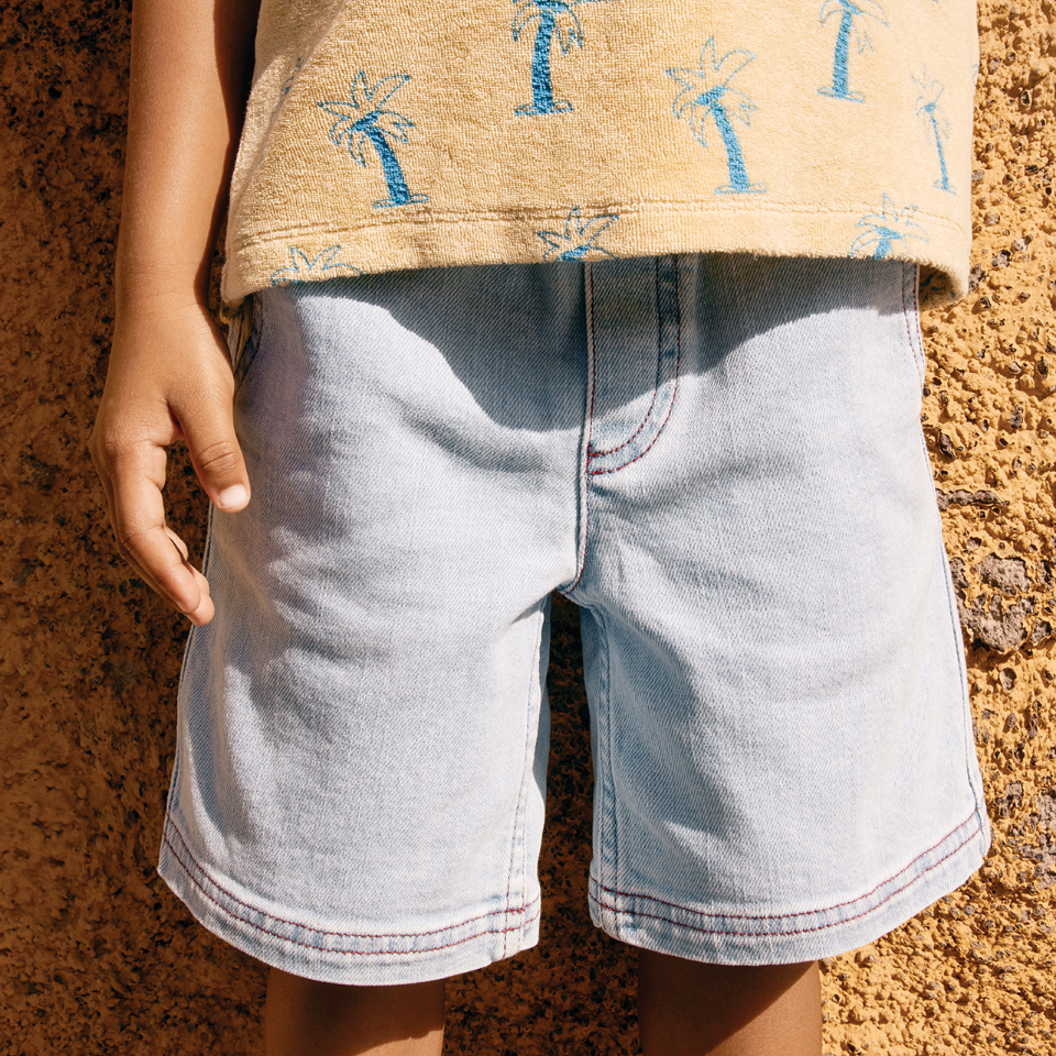 This season, denim is played in trio. There is the graphic spirit of fine stripes, the luminous softness of the wash and the depth of indigo. Made from soft fabrics to accompany every kid's adventure, our pieces revisit the classics: worker overalls, apron dresses and summer shorts. An authentic collection, full of details that make the difference