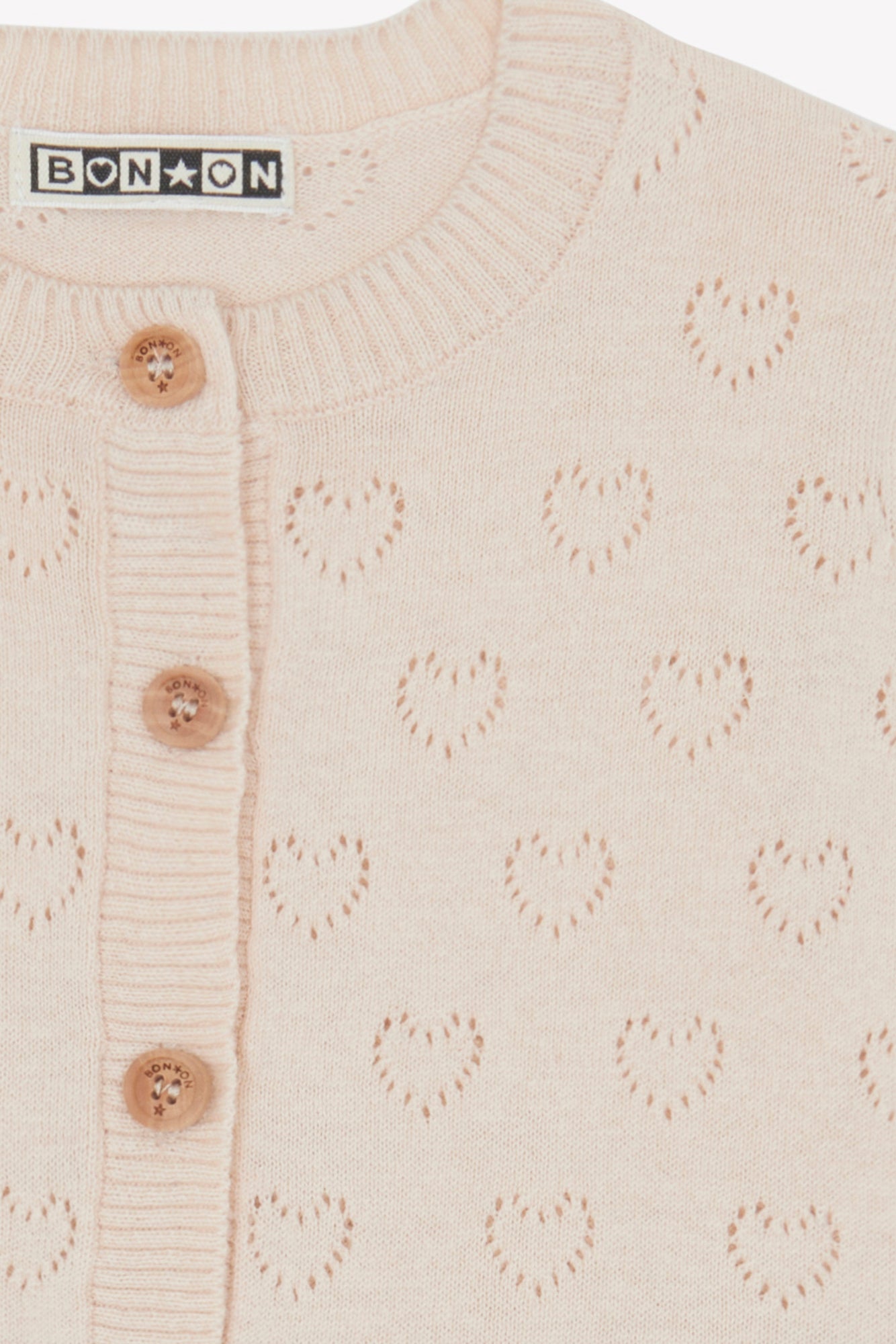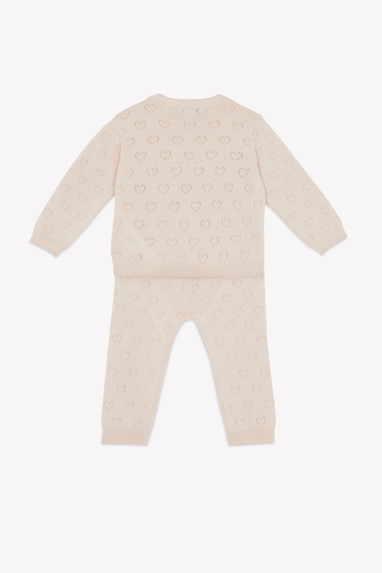 L'Outfit Marianne Écru Bonton is a sweet embrace for toddlers! With his adorable openwork hearts, he brings a touch of daily poetry of Babys. THE Cardigan and the Trousers Legging elastic size guarantee comfort and freedom of movement. Perfect for wrapping Baby in a cocoon of sweetness thanks to his Knitwearin cotton and Cashmere, this Outfit is ideal for the first months of life.