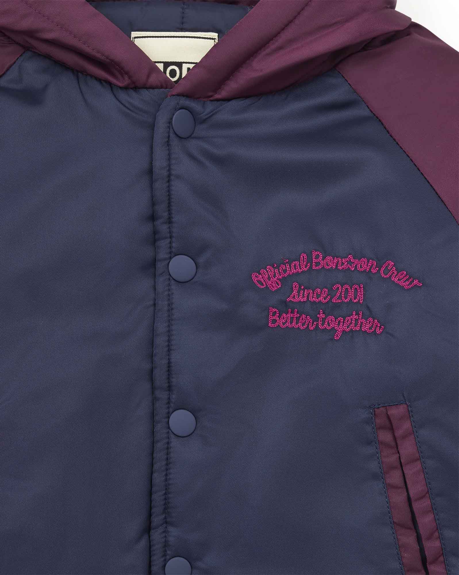 Like a "teddy", the Fonzie jacket is thick, padded. A nod to the American college spirit, he is two -tone in Navy Bonton and Bordeaux Désette of the season. We love her Embrodery Oversized "Winner" in a curl.