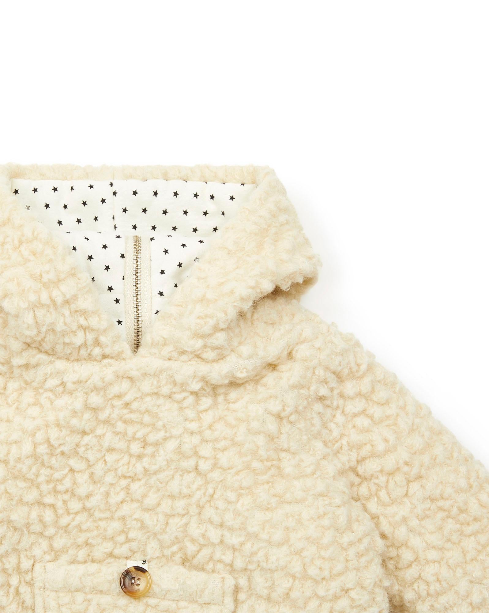 With its Pocketbefore and its Hood, THE Coat Poncho effect truck in the sheep bugger woolen is the Coat of the season. Its ecru color is perfect for approaching this season and goes with everything.