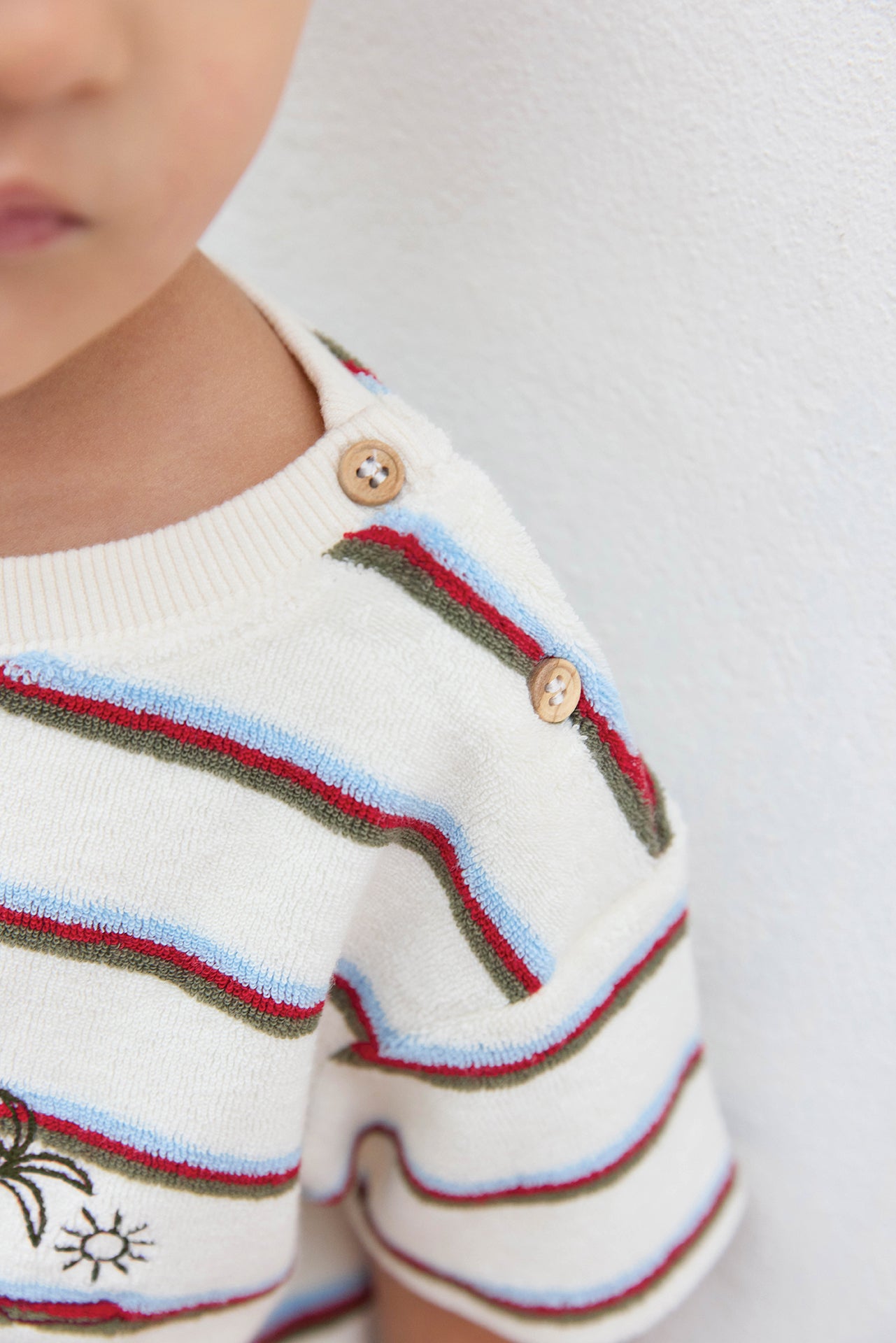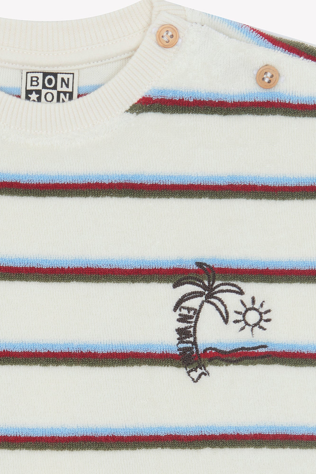 - Rayures éclatantes et détail palmier.