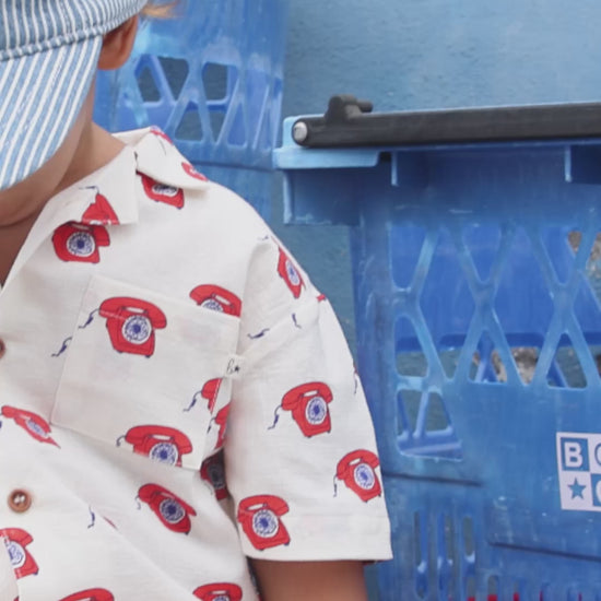 La chemise Las Vegas Phone est un clin d'œil espiègle aux années 80 avec son imprimé téléphones rétro ! Fabriquée en 100% coton, elle offre douceur et confort aux petits aventuriers. Sa poche plaquée pratique est parfaite pour ranger des petits trésors. Associez-la à un short léger pour un look estival et ludique !