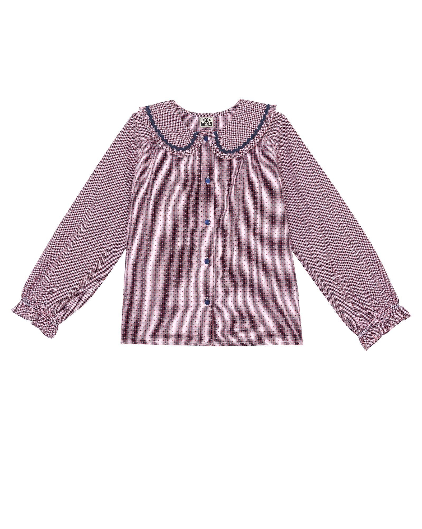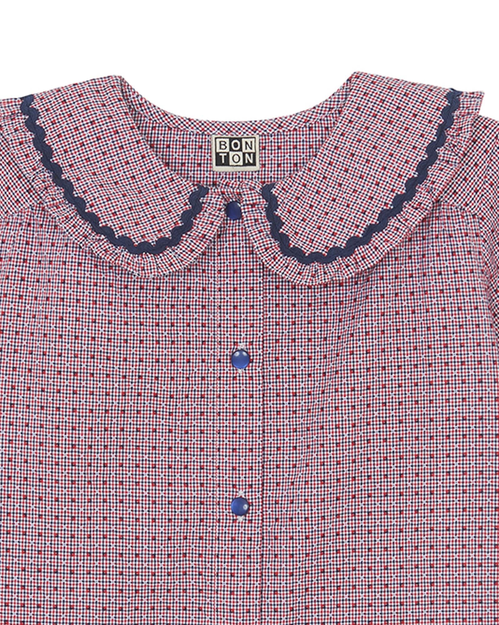 Avec son petit col Claudine (voir presque col cape), on craque pour la blouse HORTENSE en popeline façonnée. On aime ses manches bouffantes élastiques et volantées, son boutonnage sur toute la longueur et ses plissés cousus. Son motif "Carreau Navy", un mix and match de bleu et de rouge ! Cette pièce apporte un soupçon de rétro et s'inscrit dans le thème de collection BOTANY ACADEMY. Enfin, vous pouvez même l'assortir avec la jupe HEDDA pour un total look.