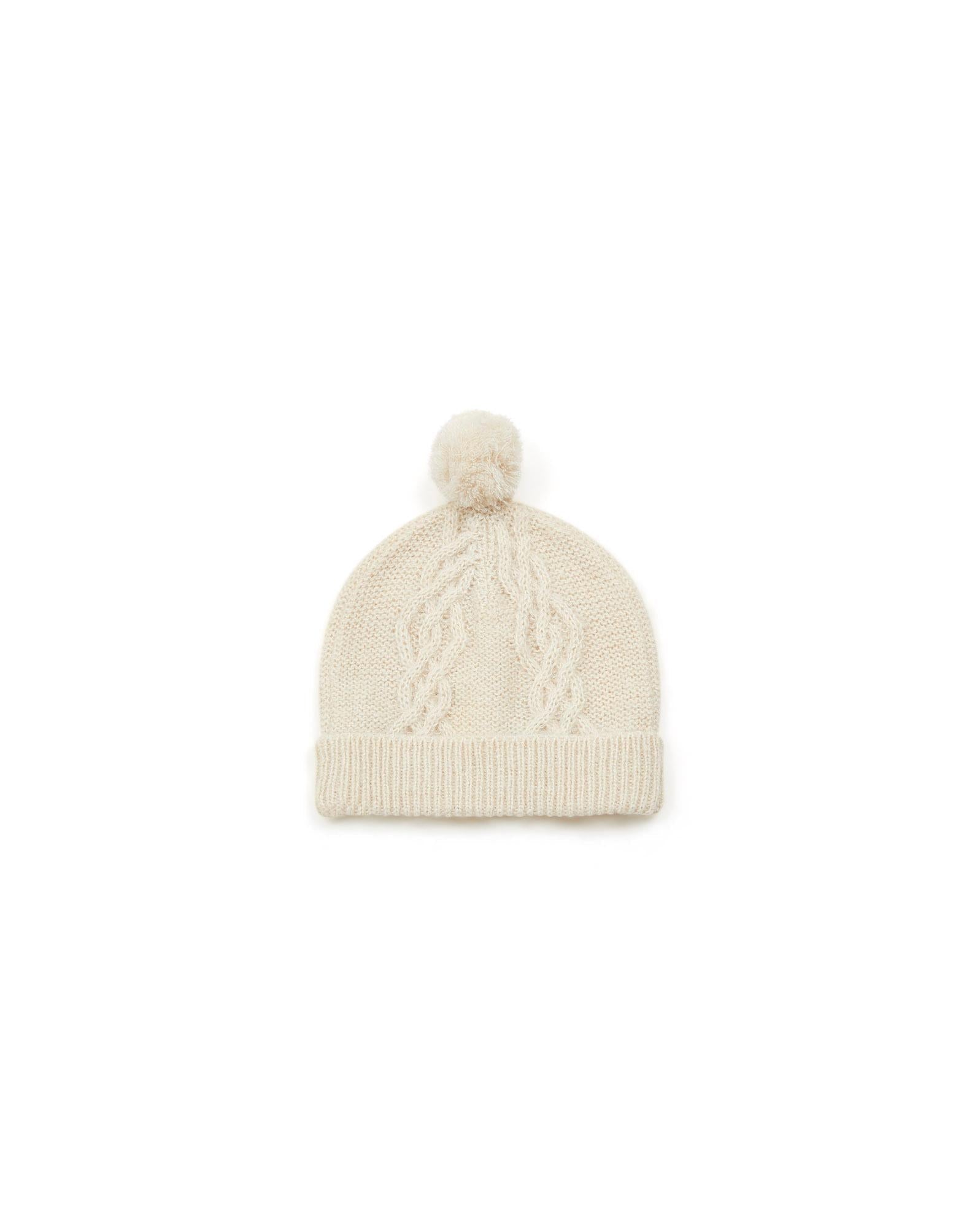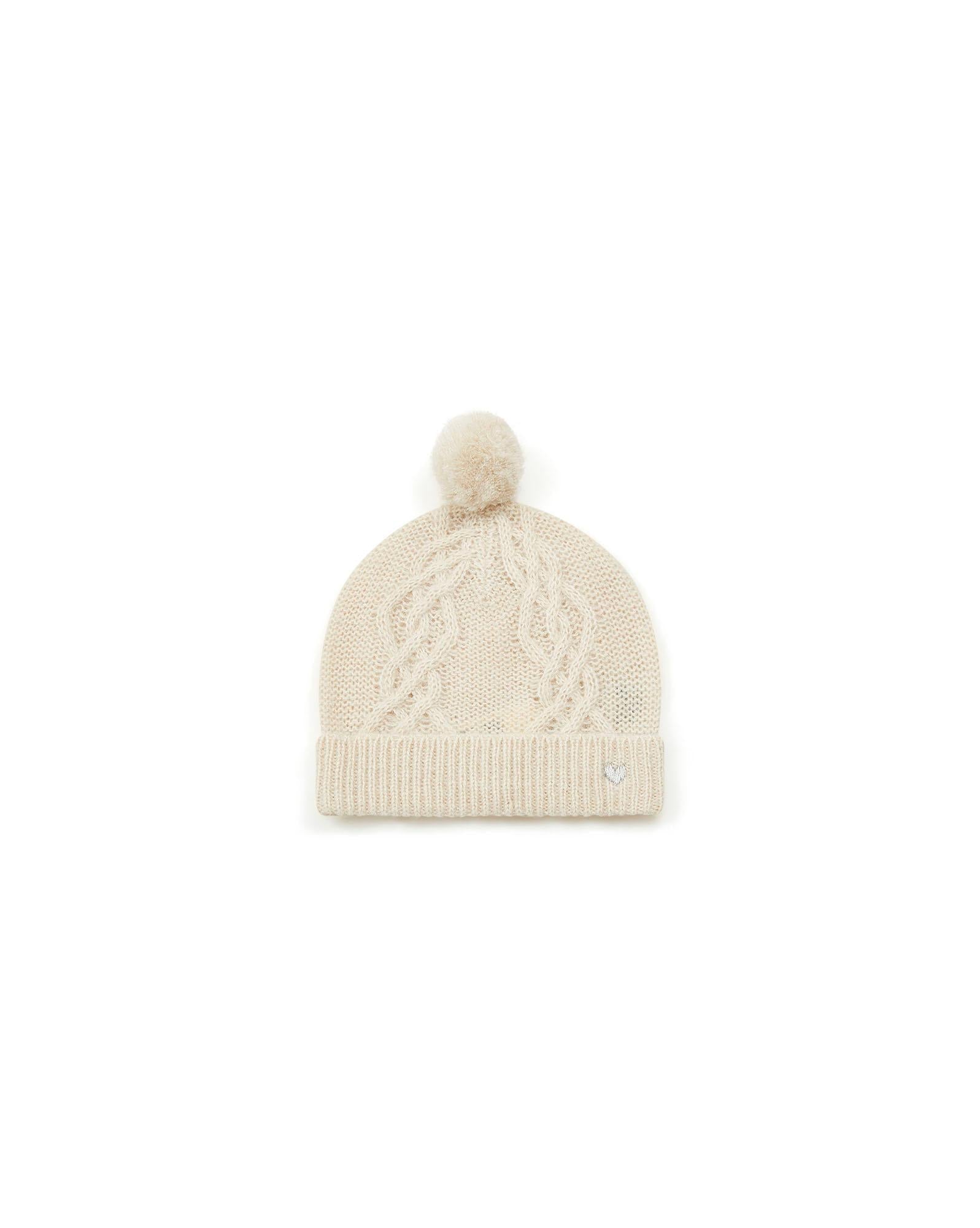 Ce joli petit bonnet bien douillet tiendra chaud à votre kid ! En tricot cable, on craque sur son petit pompon. Disponible en "Rose Be Fresh", "Gris Chiné" et "Crème Bonton".