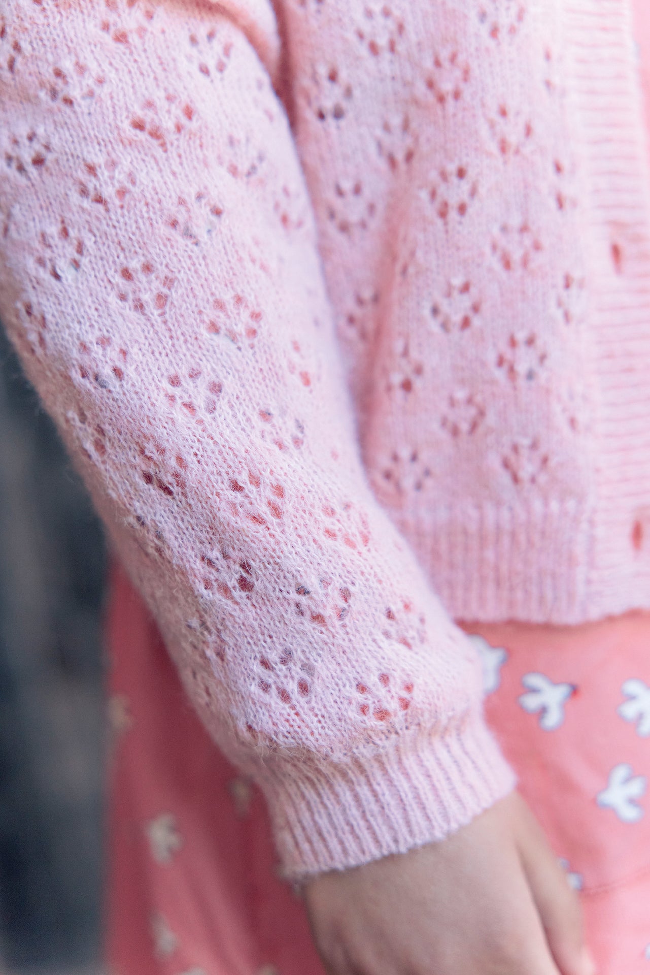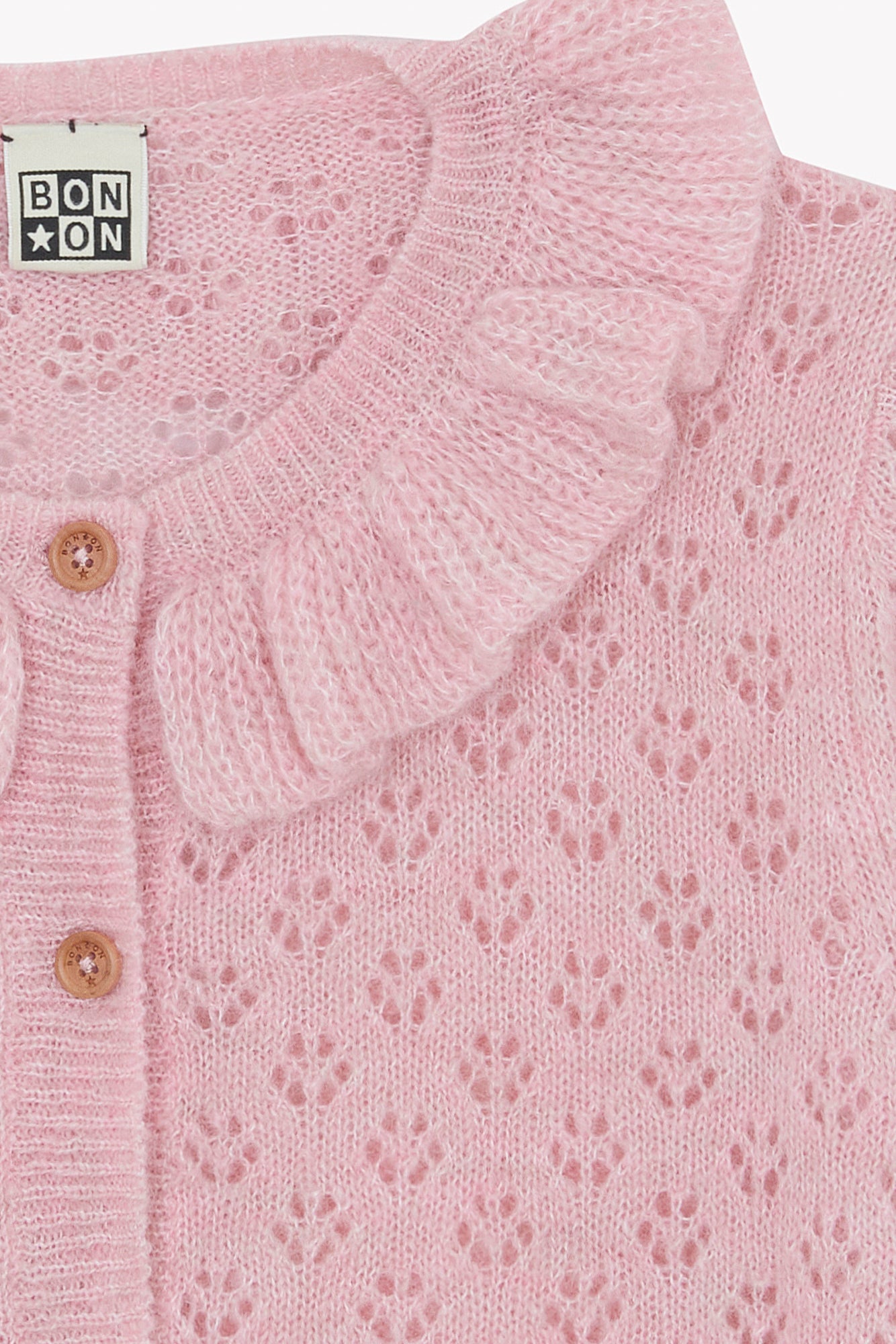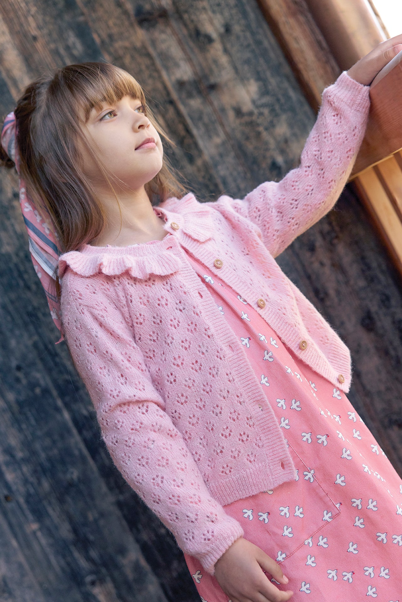 Le cardigan Corolle en rose blossom de la collection "Winter Tales" est un clin d'œil à la magie de l'hiver ! Avec sa maille ajourée en forme de cœurs et son col volanté, il promet des journées pleines de douceur et d'élégance. Parfait pour explorer les paysages enneigés avec style, il se glisse facilement sur une robe ou un t-shirt pour un look chaleureux et craquant.