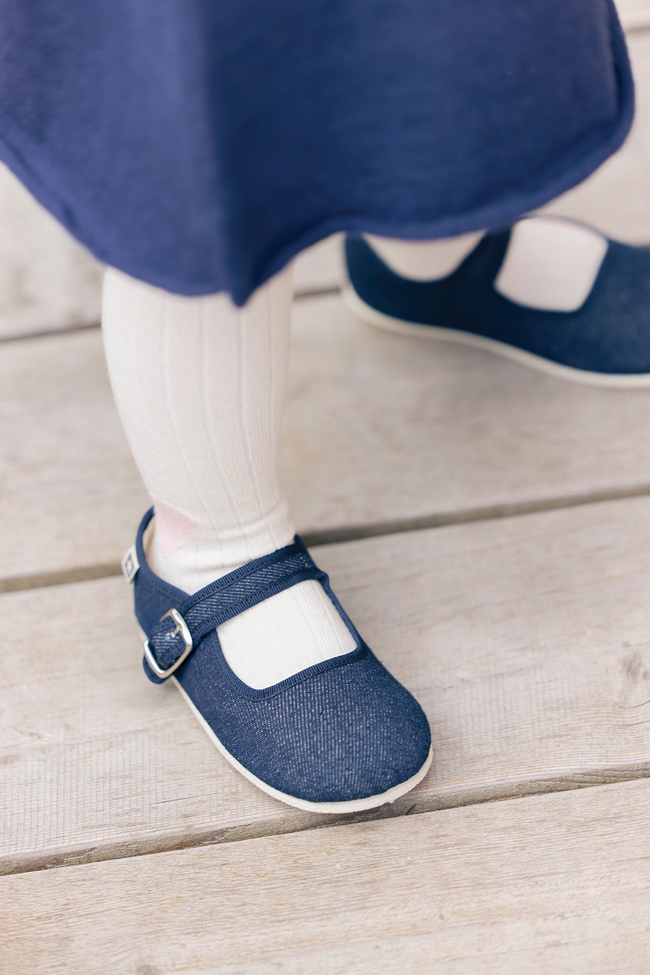 Les babies Jane en denim moyen, de la collection "The New Barn", sont une invitation à l'aventure ! Avec leur attache velcro ajustable et leur semelle en caoutchouc, ces chaussons sont parfaits pour les petites cowgirls en herbe, prêtes à explorer le salon ou le jardin. Alliant confort et style, ils complètent parfaitement un jean ou une robe pour des moments de jeu inoubliables.
