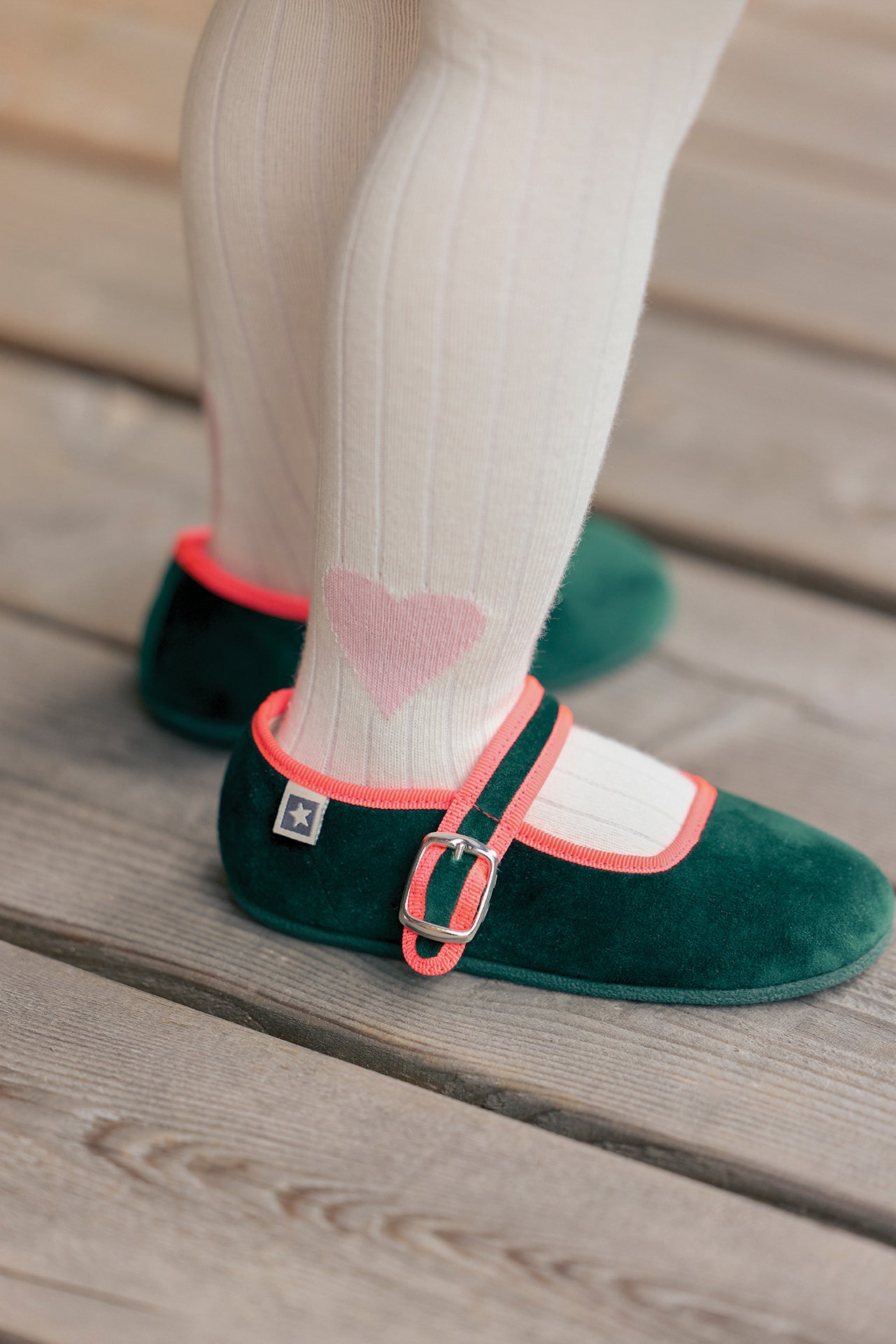 Les babies Jane en velours vert, de la collection "Faroe Island", sont parfaits pour les petites aventurières ! Avec leur attache velcro, ils s'ajustent parfaitement, que ce soit pour une balade en intérieur ou en extérieur. Leur semelle en caoutchouc assure une bonne adhérence. Idéal pour explorer les paysages féeriques tout en gardant leurs pieds bien au chaud et stylés !