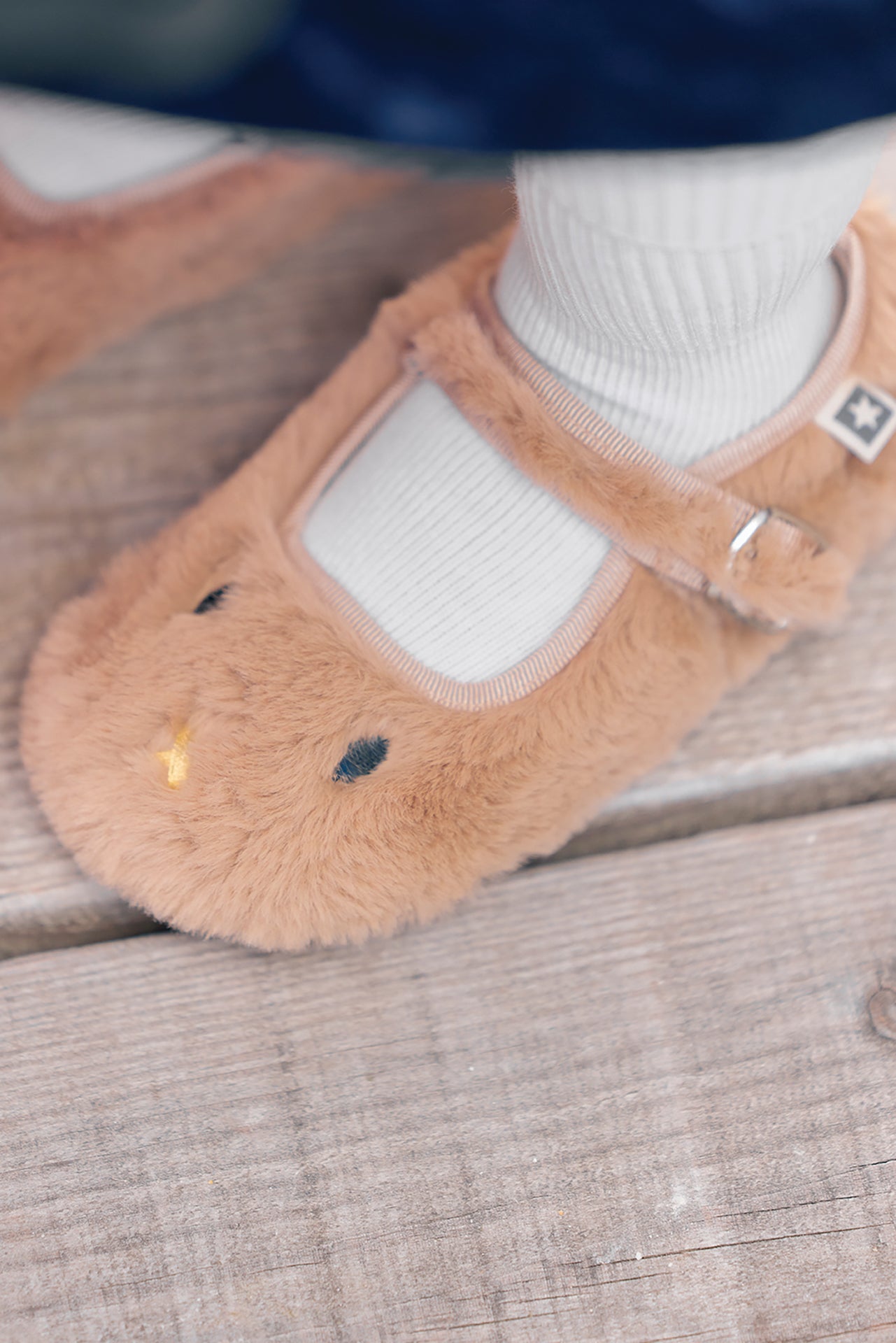 Les chaussons mia en beige renne de la collection "Faroe Island" enveloppent les pieds dans une douce imitation fourrure. Avec leur minois brodé et leur bride velcro, ils sont parfaits pour les petites exploratrices en herbe. Ces chaussons confortables apportent une touche de fantaisie à chaque pas, idéals pour les journées cocooning à la maison ou pour des aventures imaginaires !