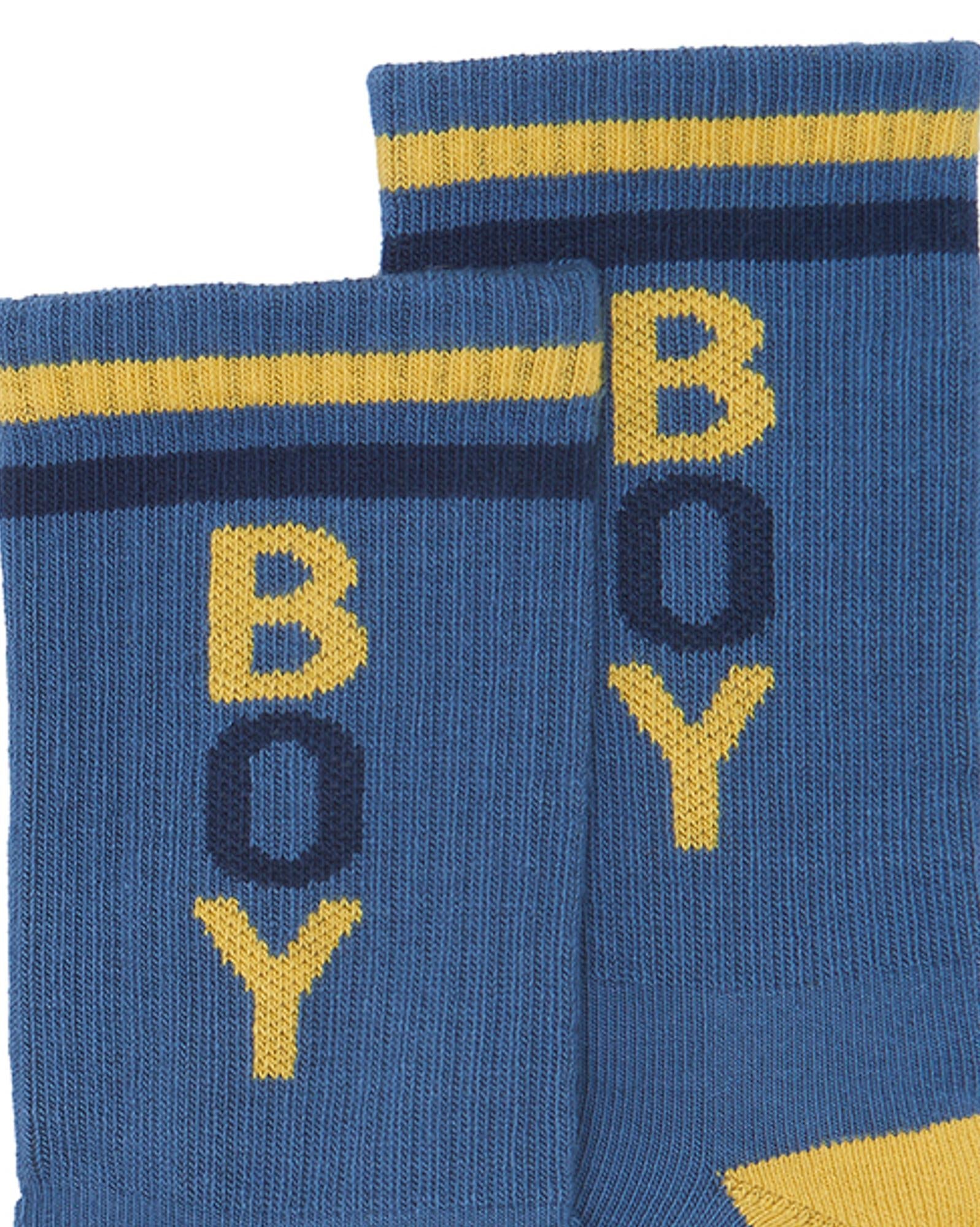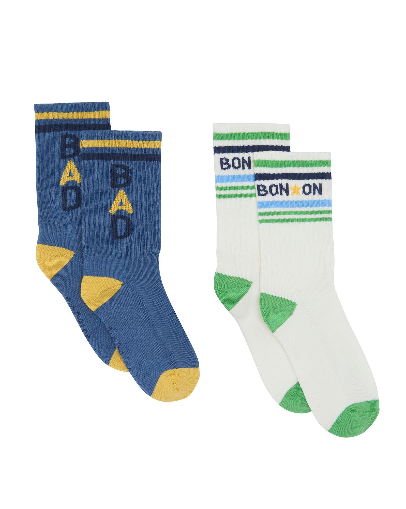 On veut des chaussettes à message chez BONTON cet hiver... Conçu spécialement pour votre « Boy », véritable inspiration de la collection hiver 2023 de BONTON. Un pack composé de deux paires de chaussettes, l'une crème et l'autre bleu curieux, de quoi matcher avec de nombreux looks. Le petit plus ? Faites-les dépasser d'une paire de basket pour donner un côté fun à un look !