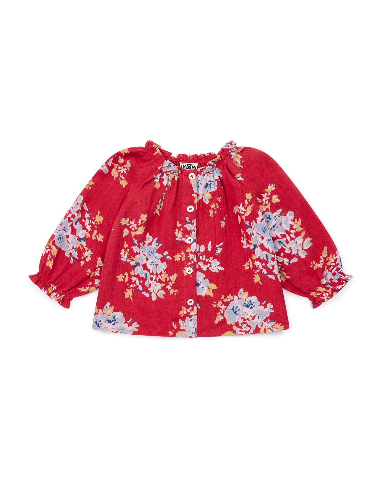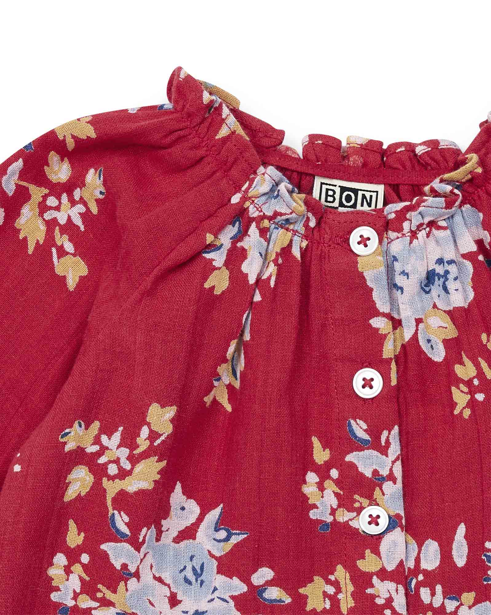 On aime l'imprimé "blockprint" de cette blouse fille, typiquement indien... et sa teinte Bruyère, inspirée des couleurs d'autommne. Avec sa patte de boutonnage à la façon d'une tunique, la blouse se joue des smocks sur les épaules. Un joli détail qui n'échappera à personne. Le voile de coton apporte douceur et met en valeur le volume de cette blouse. On retrouve cet imprimé dans les collections bébé et femme !