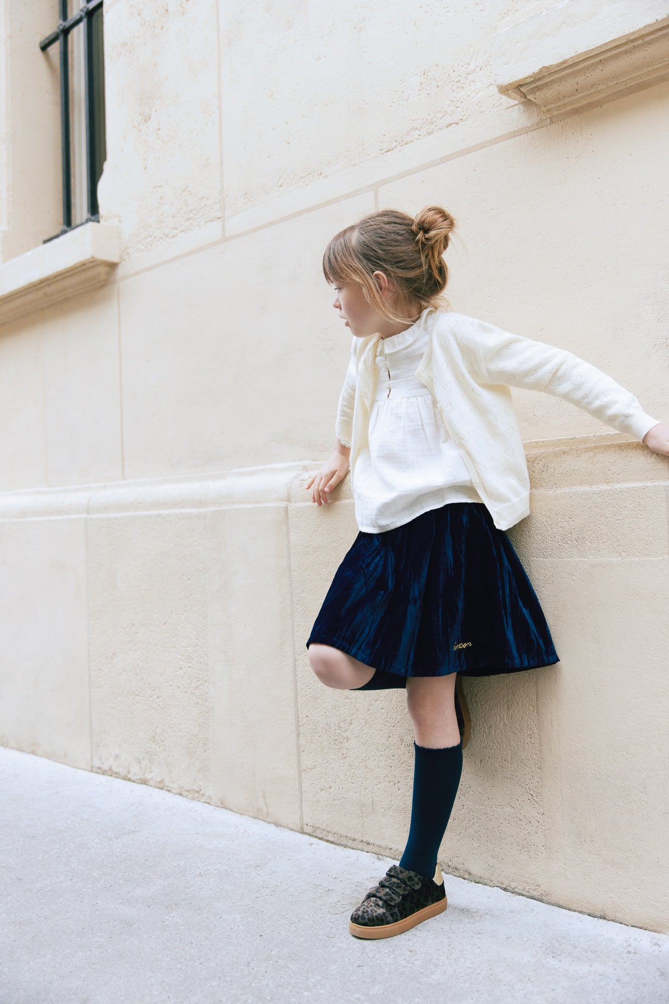 Plongez dans un monde de couleur et de fantaisie avec la Jupe Framboise ! En Navy Bonton ou avec nos imprimés iconiques de la saison, cette jupe fluide et tendance offre une explosion de style à chaque instant.