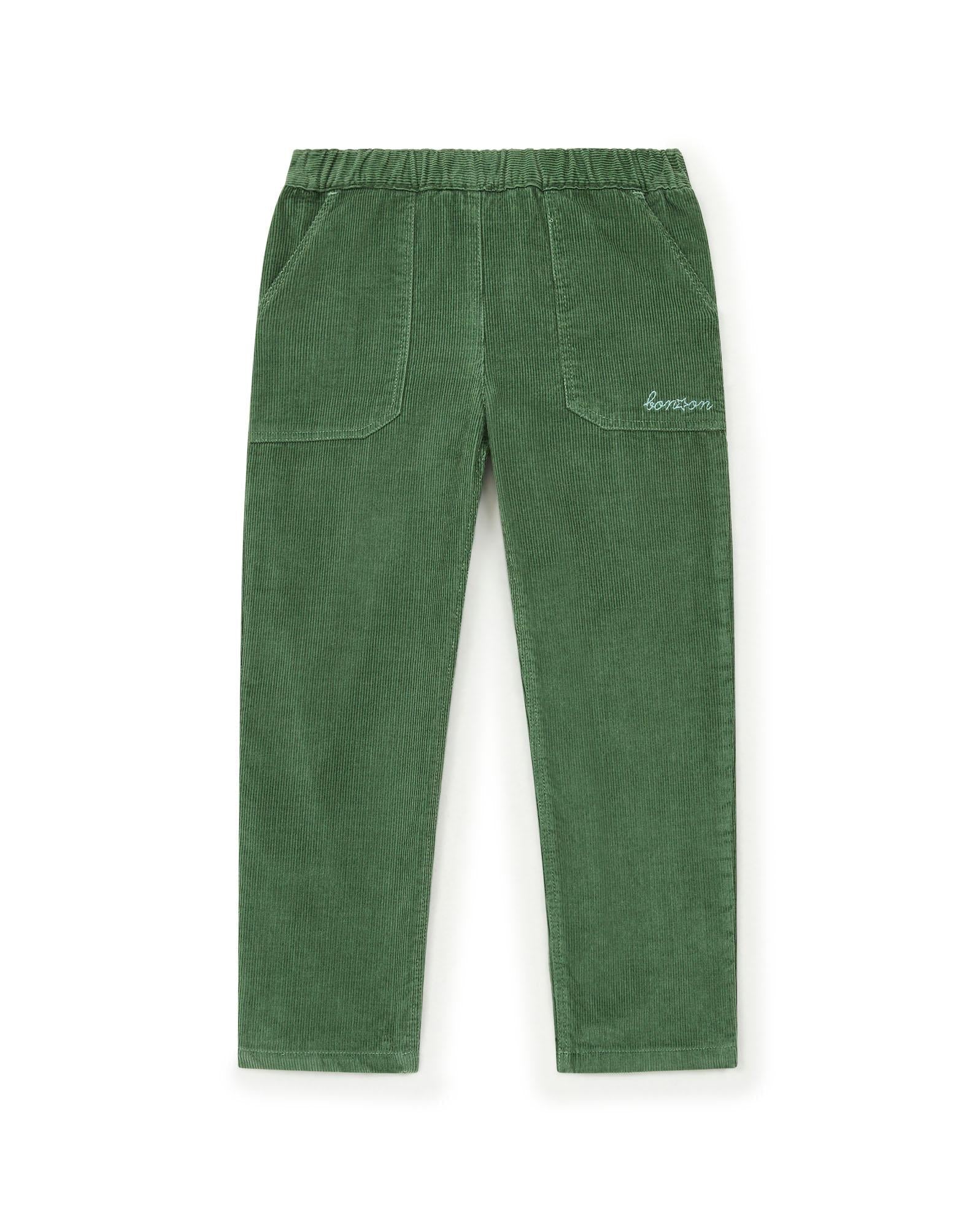 Pantalon Batcha vert en coton tweed
