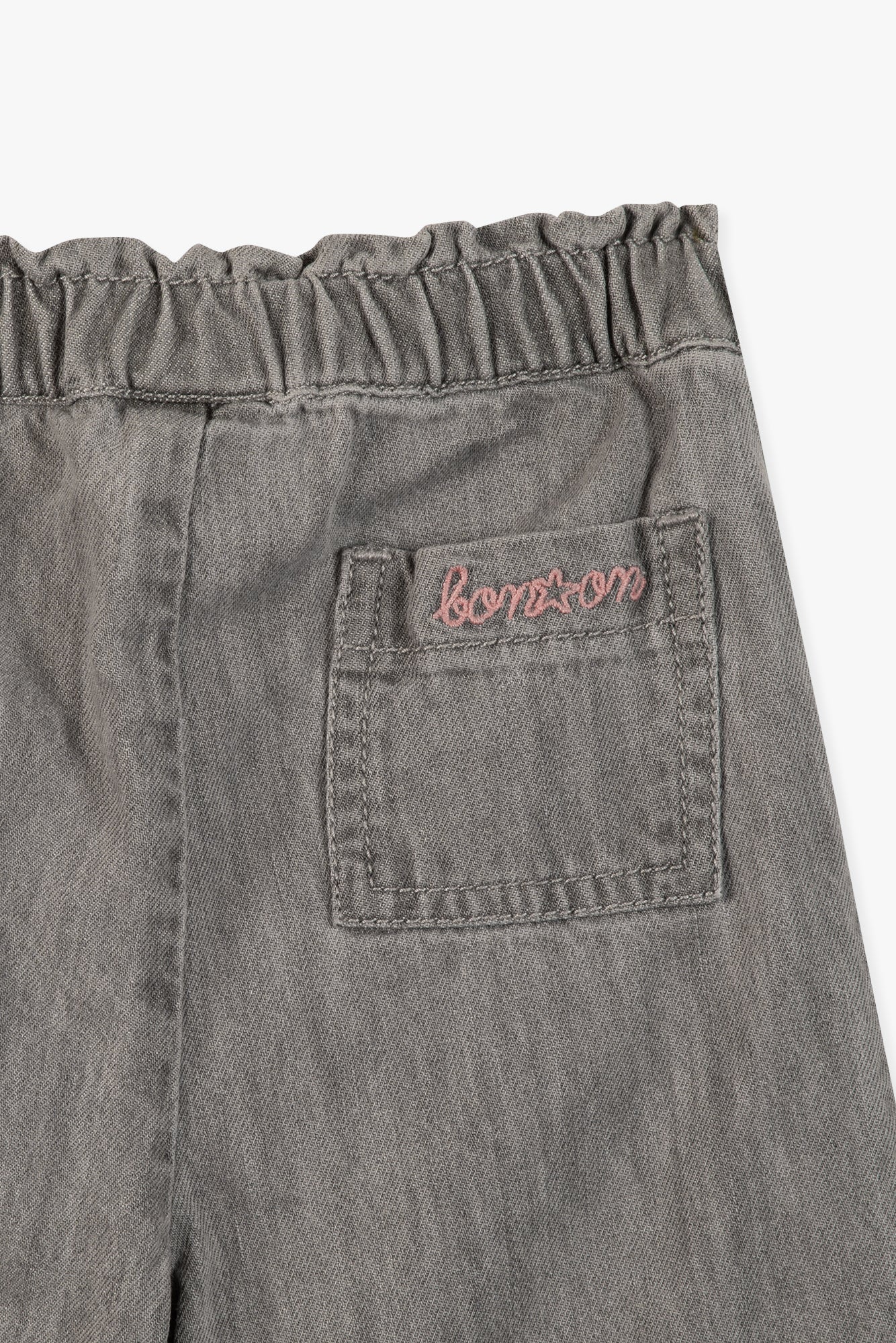 Le Pantalon Jade en chambray gris est parfaitement adapté aux tout-petits ! Avec ses grands ourlets pour un ajustement optimal, ce pantalon offre à votre bébé une allure moderne et confortable.