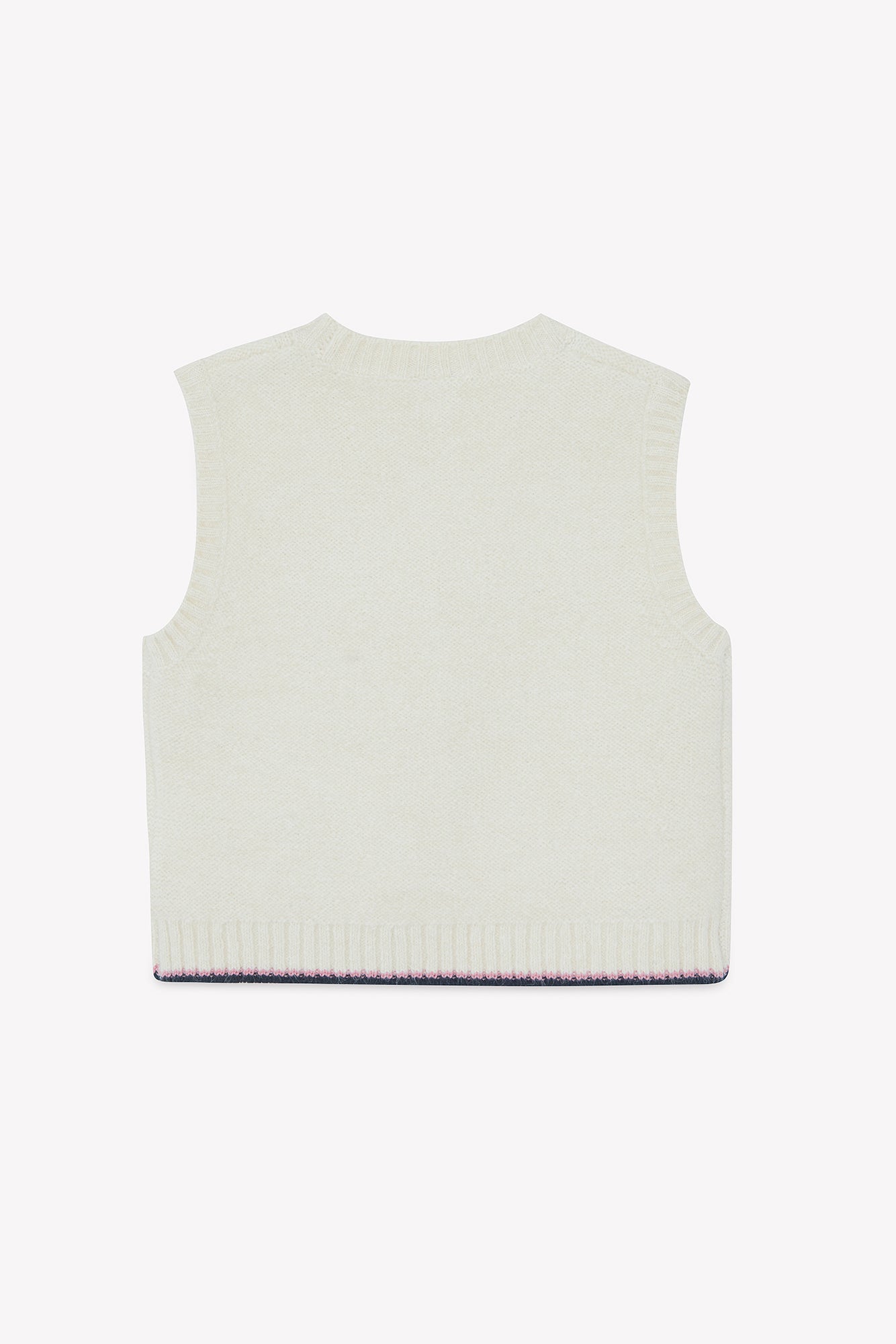Le pull sans manche Lucia, de la collection "Winter Tales", invite à la magie hivernale avec sa maille torsadée à l'avant. Parfait pour créer une tenue cocooning, il sera idéal sur un t-shirt à manches longues pour explorer les paysages glacés ou rester bien au chaud à la maison. Un vêtement qui allie confort et style pour les petites aventurières !