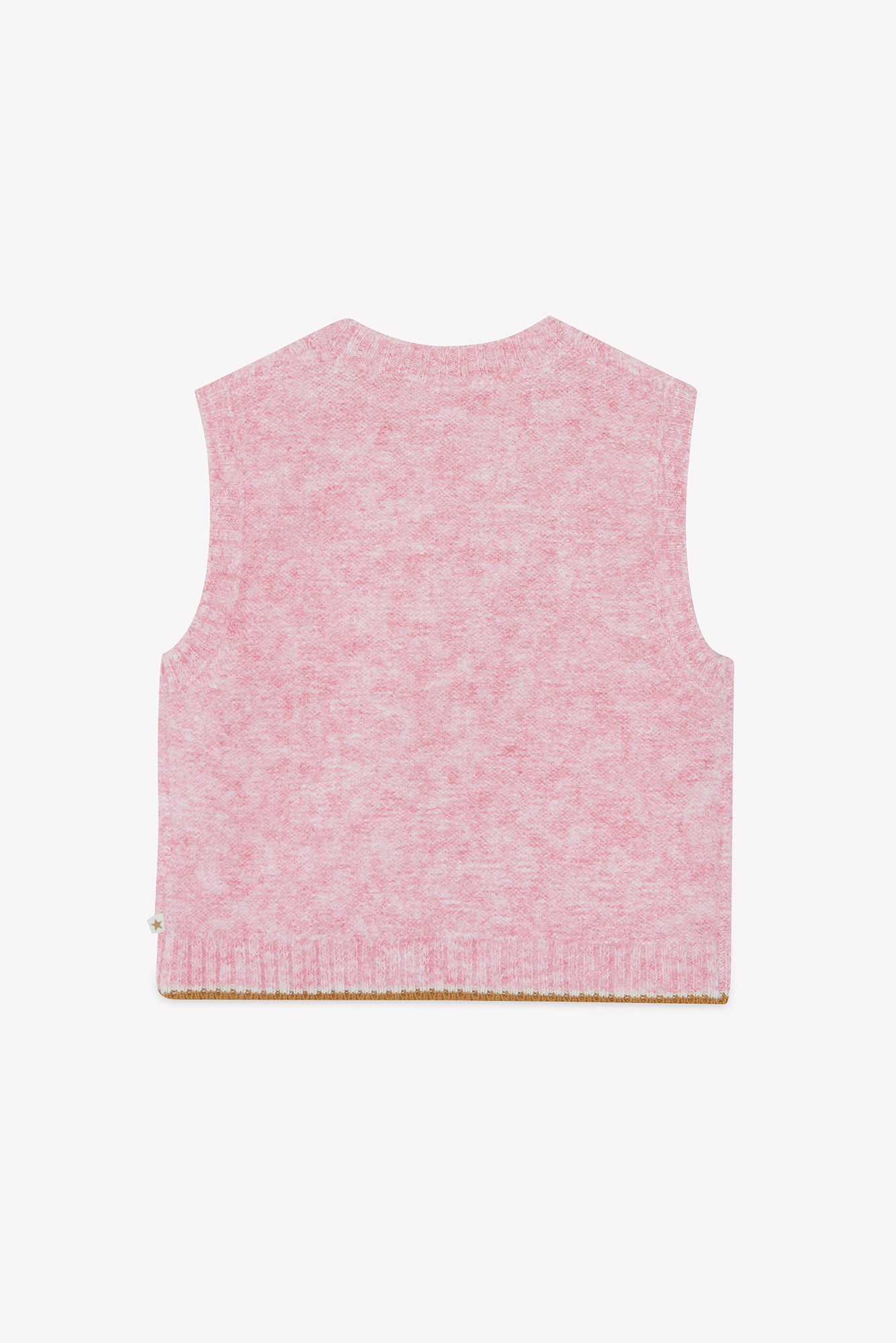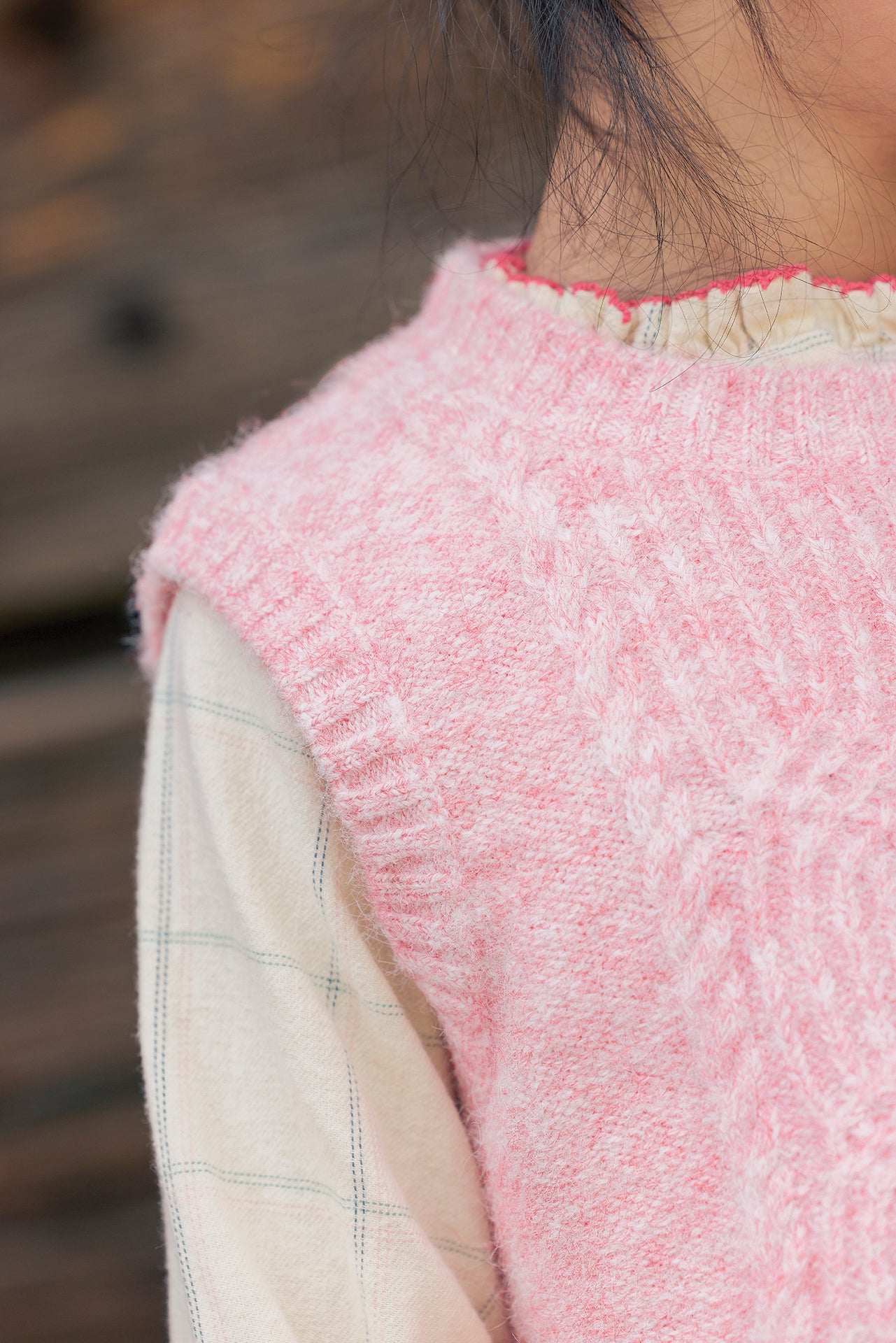 Le pull sans manche Lucia de la collection "Faroe Island" en rose pinkyee invite à l'aventure avec style ! Sa maille torsadée à l'avant évoque les montagnes féeriques des îles Féroé. Parfait pour les jeunes exploratrices, il se porte sur un t-shirt léger ou une blouse pour une touche de chaleur et de fantaisie. Idéal à associer avec un jean ou une jupe pour un look plein de charme !