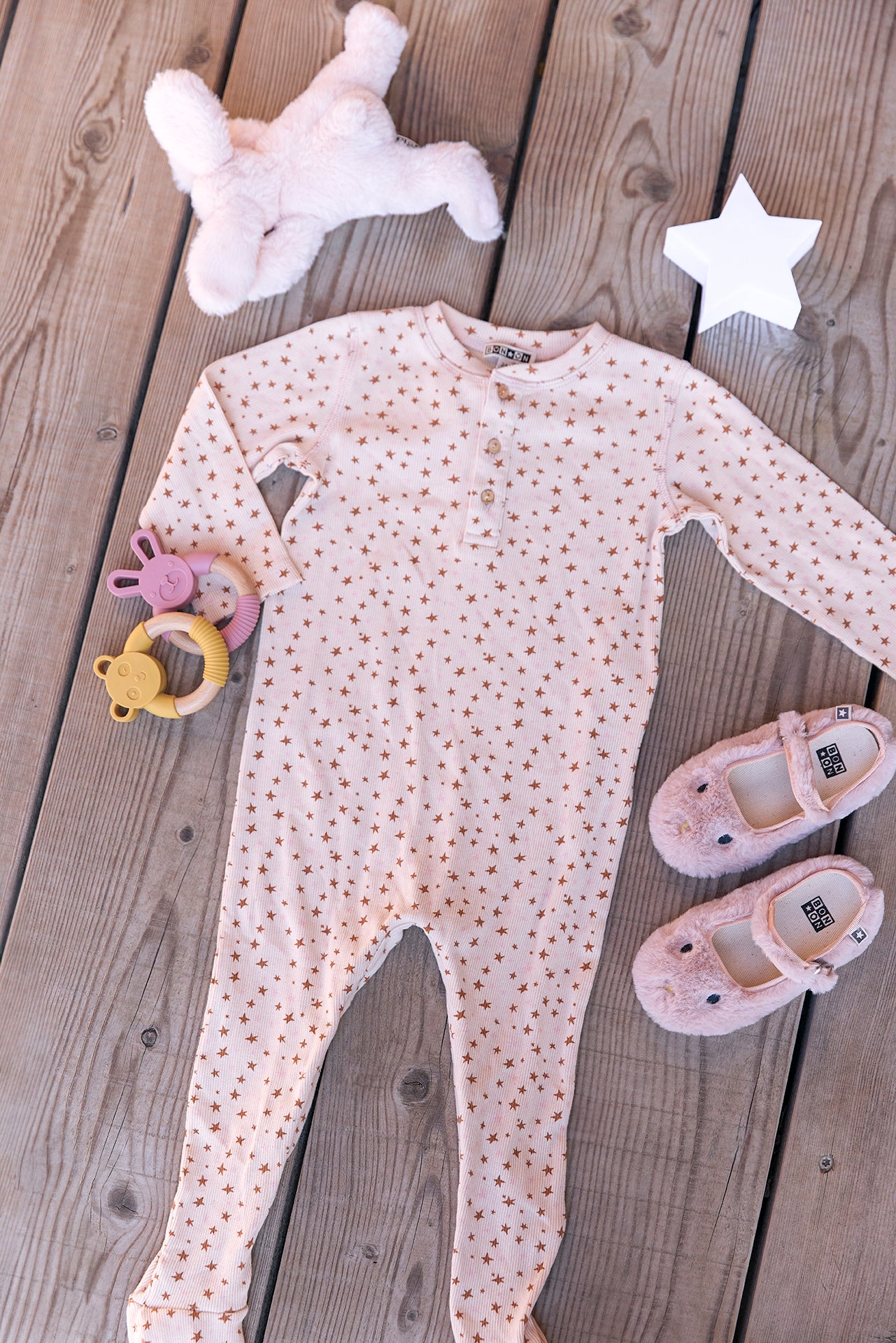 Plongez dans un univers de douceur avec notre pyjama étoiles ! Idéal pour les nuits paisibles de bébé, il allie confort et tendresse grâce à son tissu en 95% coton et 5% élasthanne. Le col rond avec trois boutons à l'avant facilite l'habillage tout en ajoutant une touche de charme. Un choix parfait pour envelopper bébé dans un cocon de rêve et de douceur.