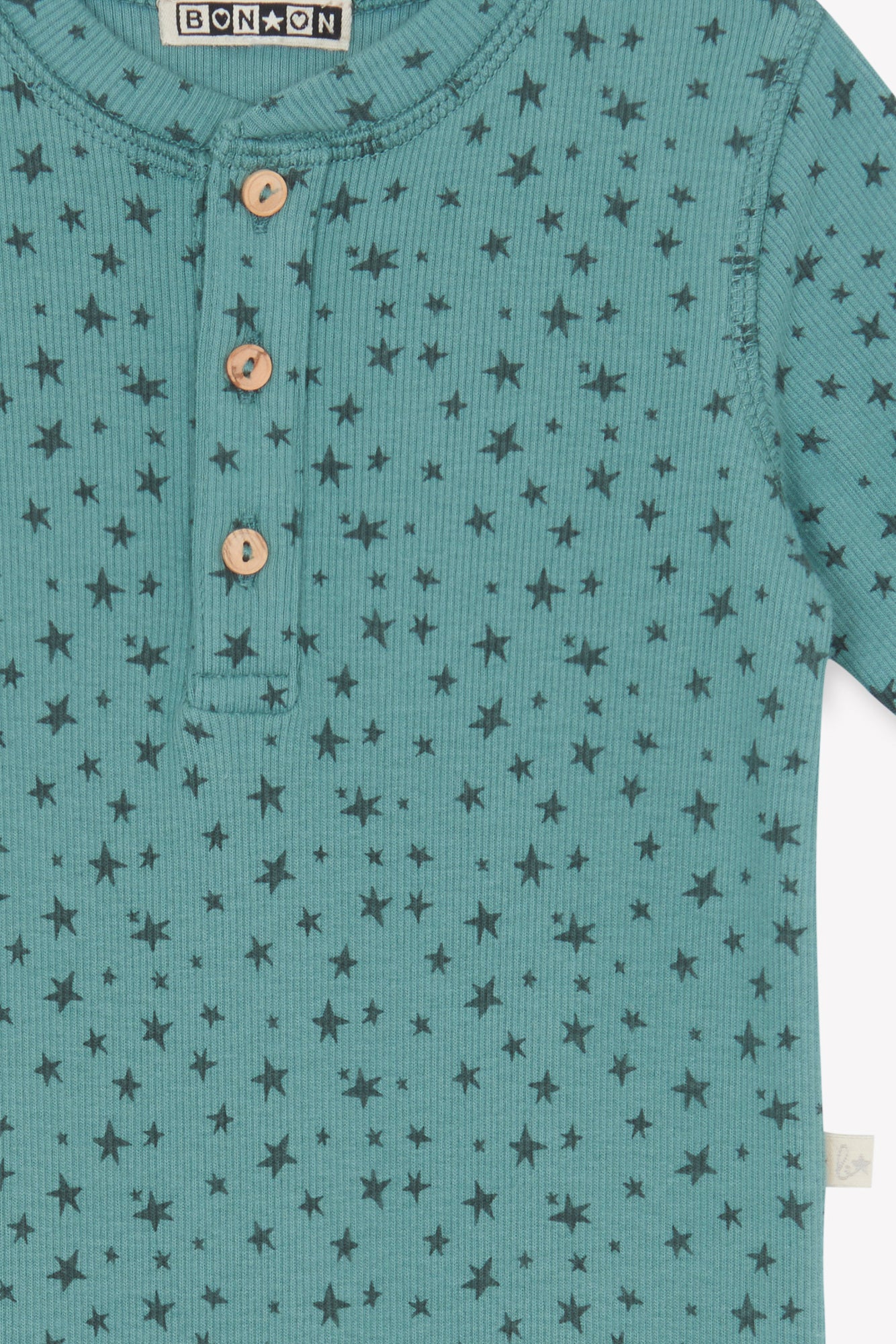 Plongez dans un univers de douceur avec notre pyjama étoiles ! Idéal pour les nuits paisibles de bébé, il allie confort et tendresse grâce à son tissu en 95% coton et 5% élasthanne. Le col rond avec trois boutons à l'avant facilite l'habillage tout en ajoutant une touche de charme. Un choix parfait pour envelopper bébé dans un cocon de rêve et de douceur.