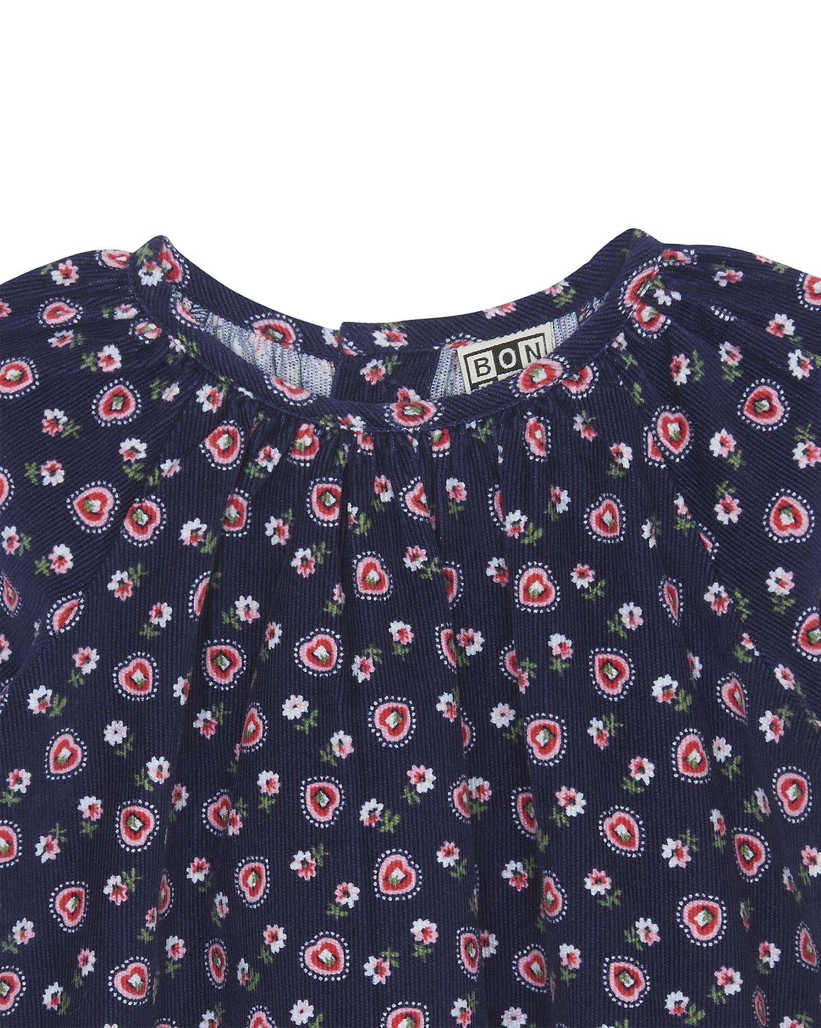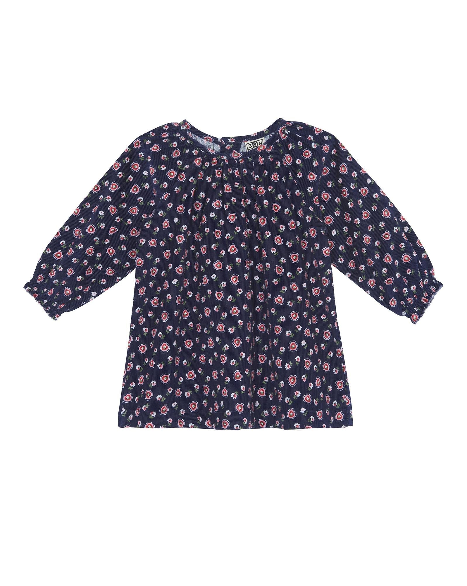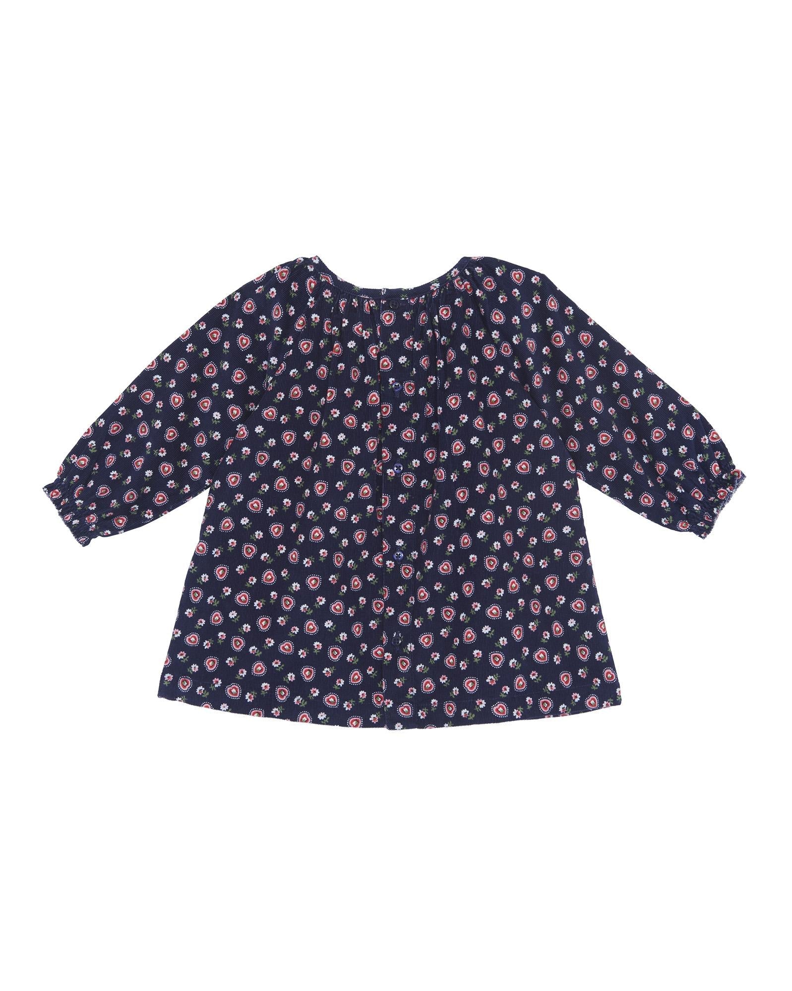 Une robe pleine de charme avec son col et ses jolies emmanchures. Son velour imprimé coeur marine envelopera bébé d'amour cette saison!