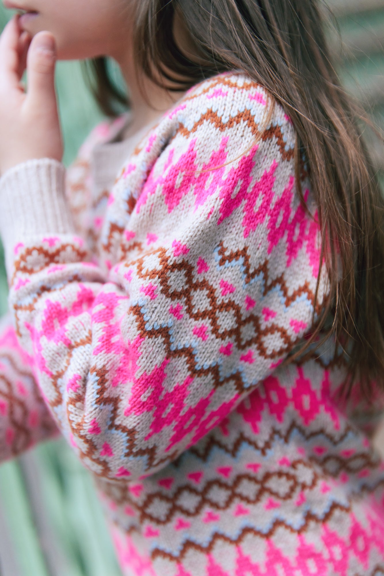 La Robe Jaelys Feraille séduit par ses nuances chaudes de rose et de marron, créant un tableau multicolore réconfortant. Confectionnée dans un tricot orné d'un imprimé traditionnel inspiré des plaines Canadiennes, elle évoque un charme rustique et authentique. Une pièce qui allie confort et style, parfaite pour ajouter une touche de naturel et d'originalité au vestiaire.