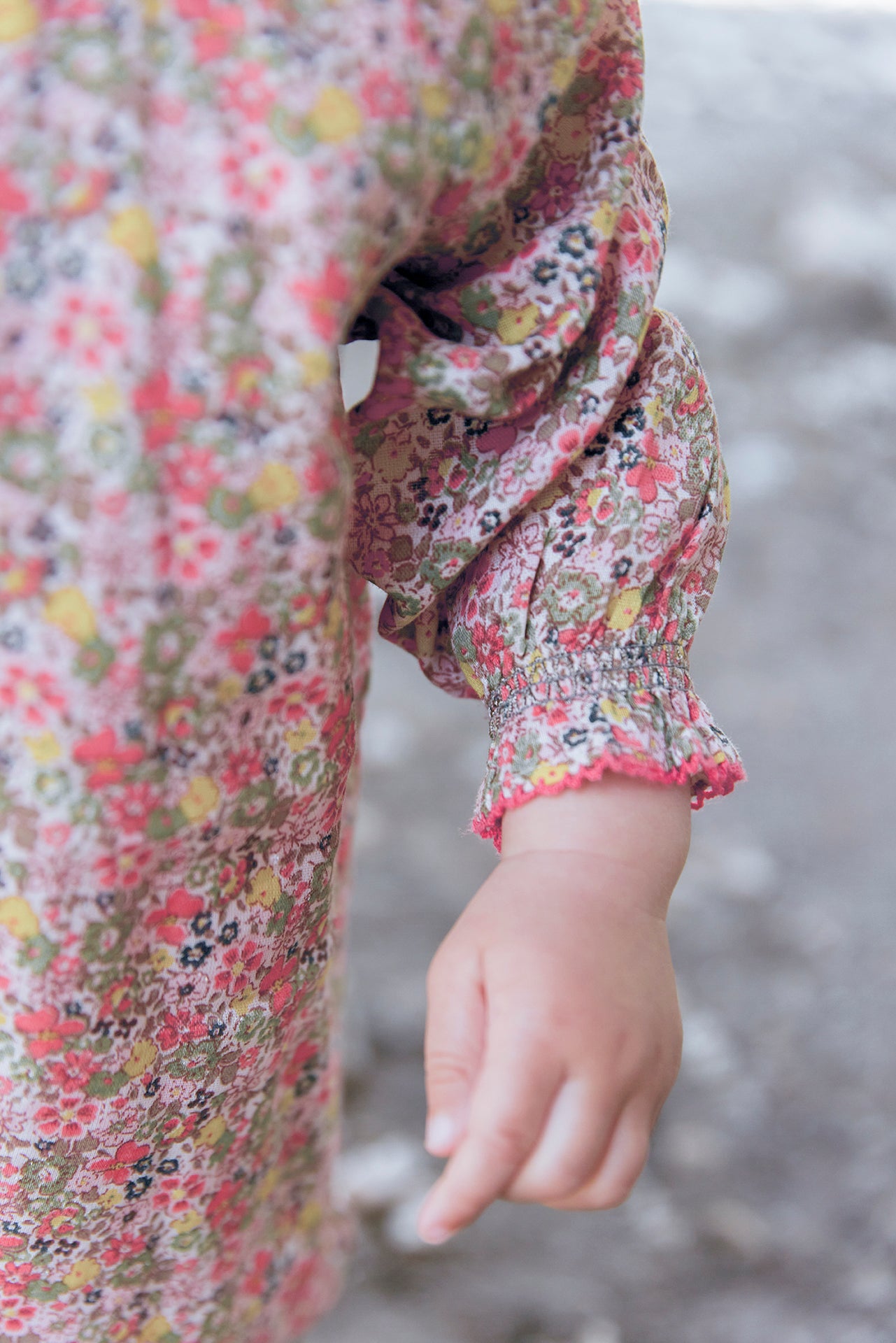 La robe Mala à manches longues, issue de la collection "Faroe Island", est une invitation à l'évasion avec son imprimé fleuri Meadow. Confectionnée en 100% coton, elle assure confort et douceur pour toutes les petites exploratrices. Sa coupe évasée et ses poignets élastiques ajoutent une touche de légèreté, tandis que les détails en picot au col et aux poignets apportent un charme irrésistible. Parfaite pour virevolter dans la prairie ou se prélasser à la maison !