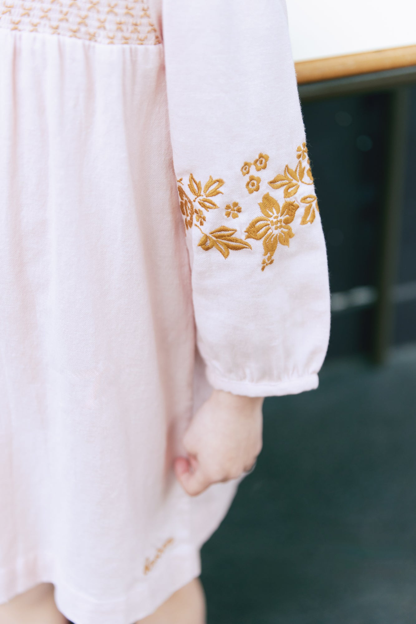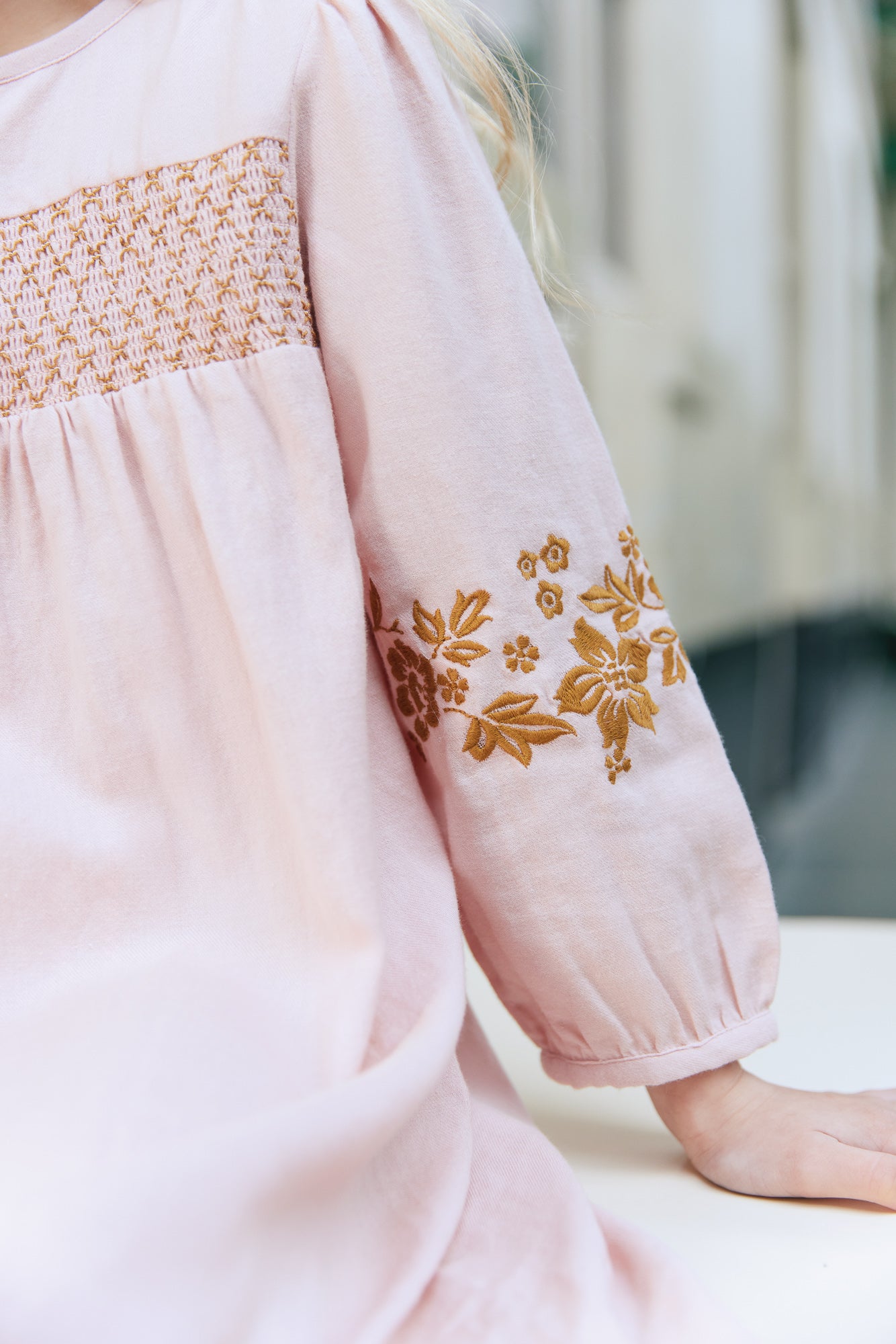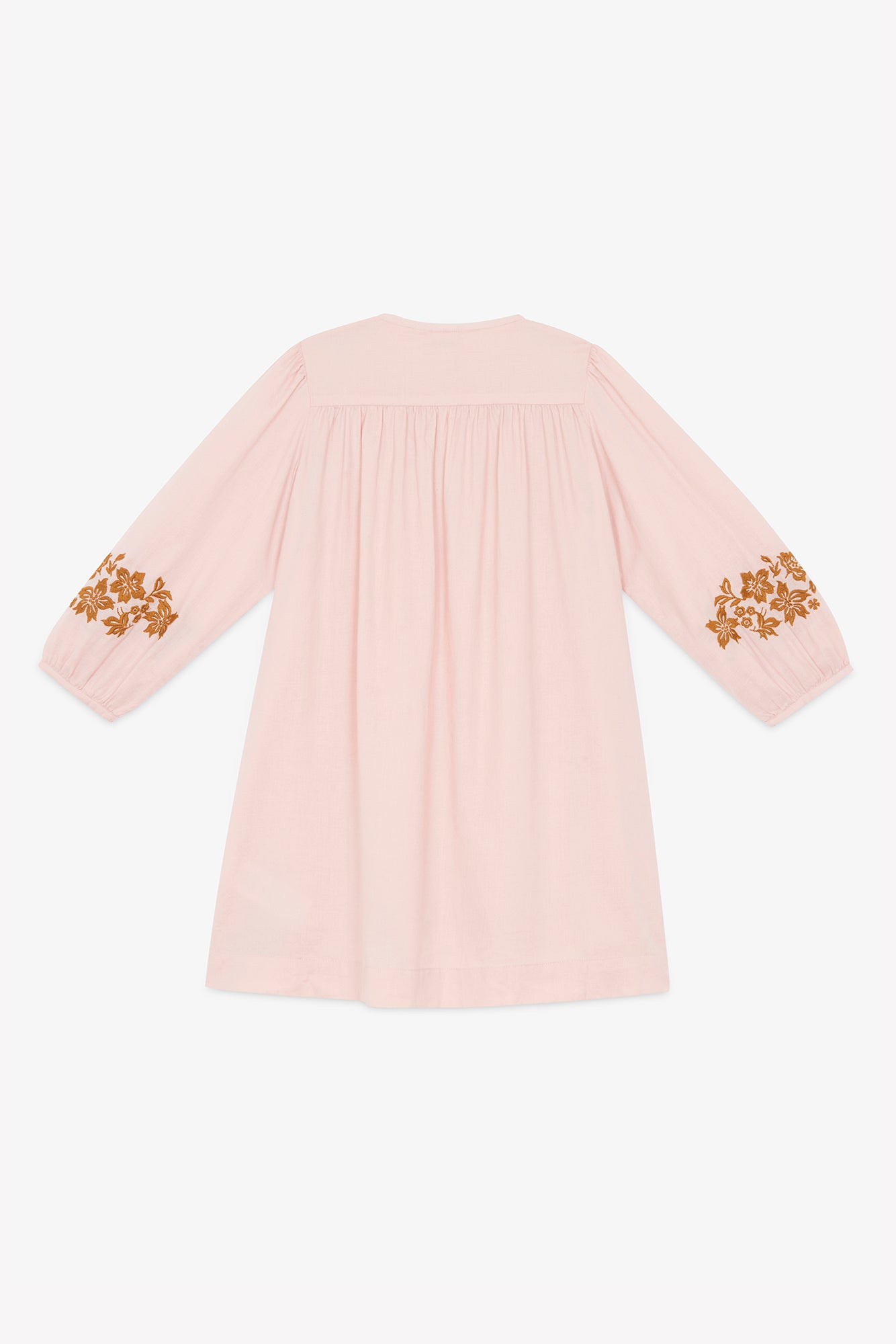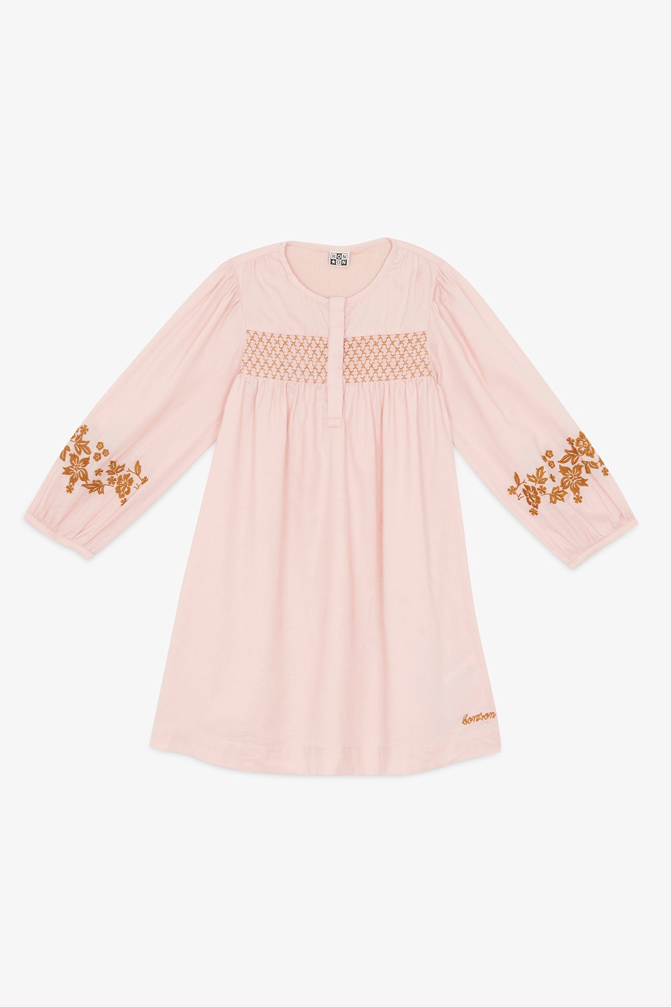 La Robe Françoise, dans un élégant coloris Peach Whip, est confectionnée en twill de coton, idéale pour les journées fraîches. Avec ses détails et boutons délicats sur le devant et le haut de la robe, elle ajoute une touche de charme et de chaleur à la garde robe de votre kid !