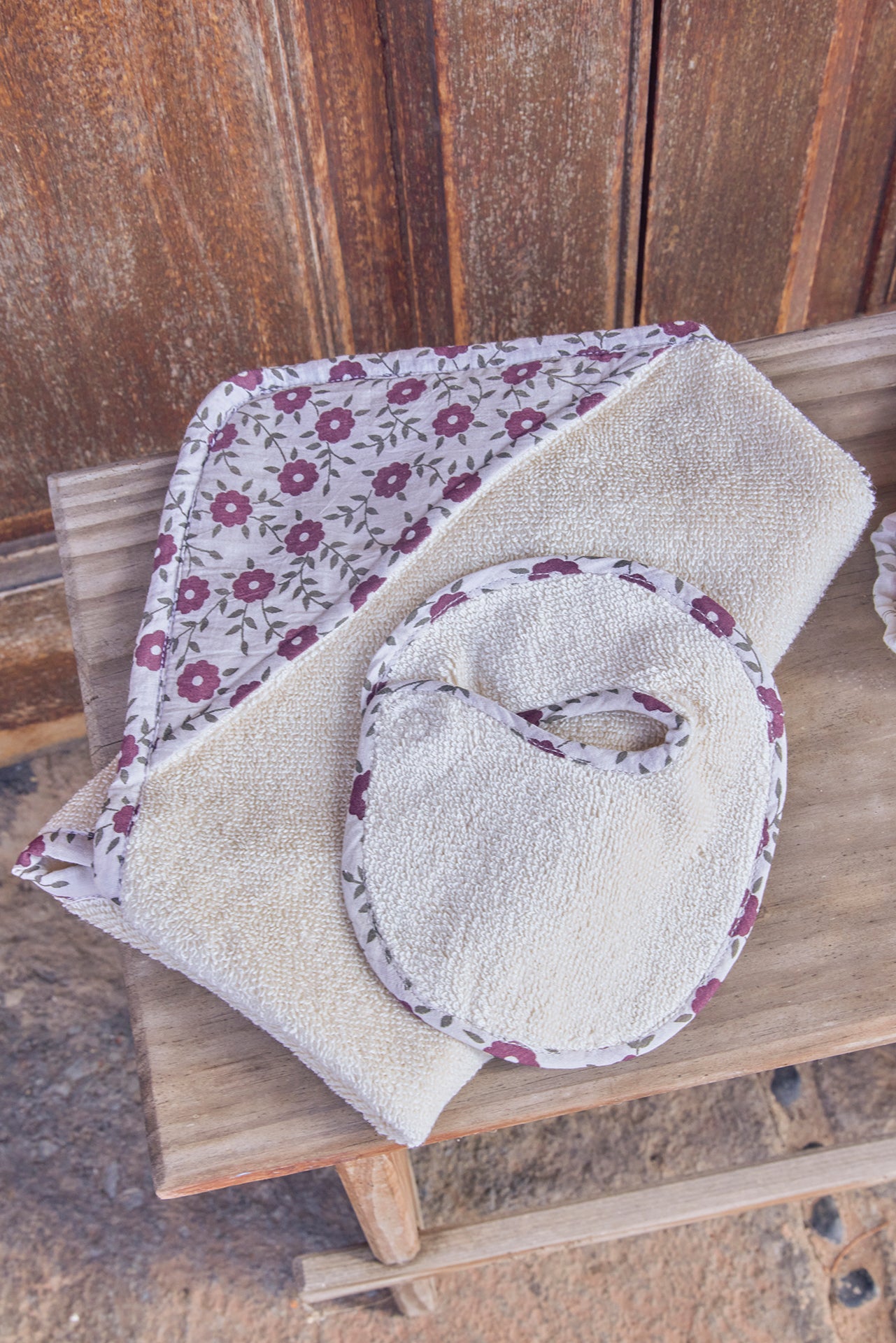 Sortie bain et Bavoir Prune