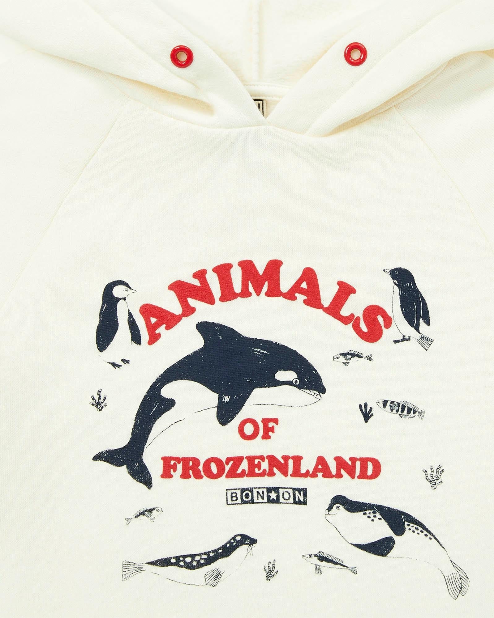 Ce sweatshirt "ANIMALS" est en molleton 100% coton pour un maintien au chaud tout en douceur. Le décor imprimé a été dessiné au sein du studio de création BONTON. Vous pouvez le porter de manière décontractée avec un petit jean ou bien dans un look plus confort avec un pantalon de jogging.