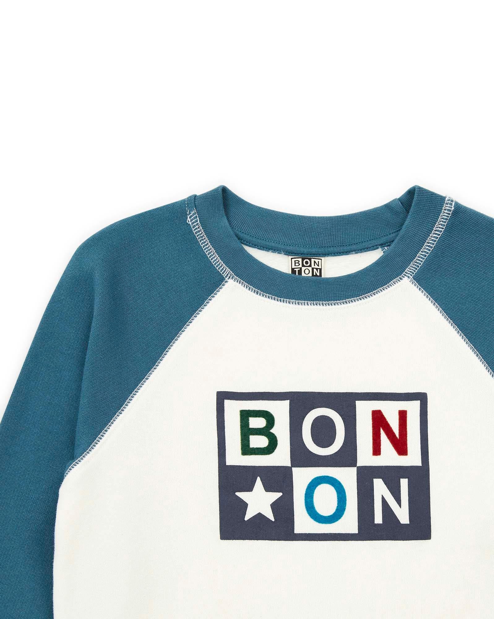 Avec ses emmanchures raglan, on aime le contraste de ce sweat bicolore. Un sweatshirt logoté BONTON en molleton 100% coton pour un maintien au chaud tout en douceur. Vous pouvez le porter de manière décontractée avec un petit jean ou bien dans un total look matchy avec son pantalon de jogging du même colori !