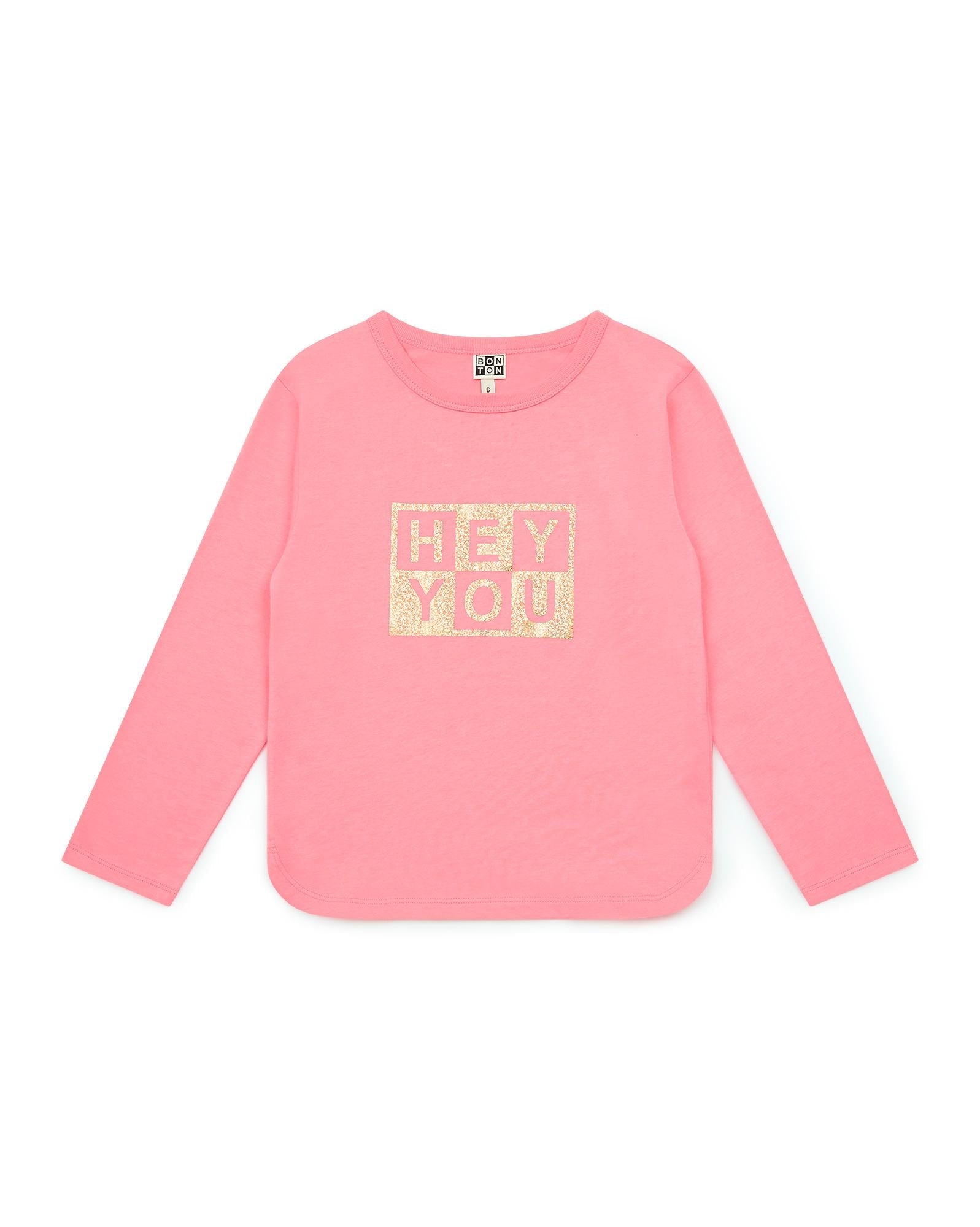 HEU YOU ! Un message fun à la cool signé BONTON. Le décor de son design a été dessiné au sein du studio de création BONTON. On aime la matière douce que de son jersey en coton biologique, sa couleur "Rose Be Fresh" et ses emmanchures raglan.