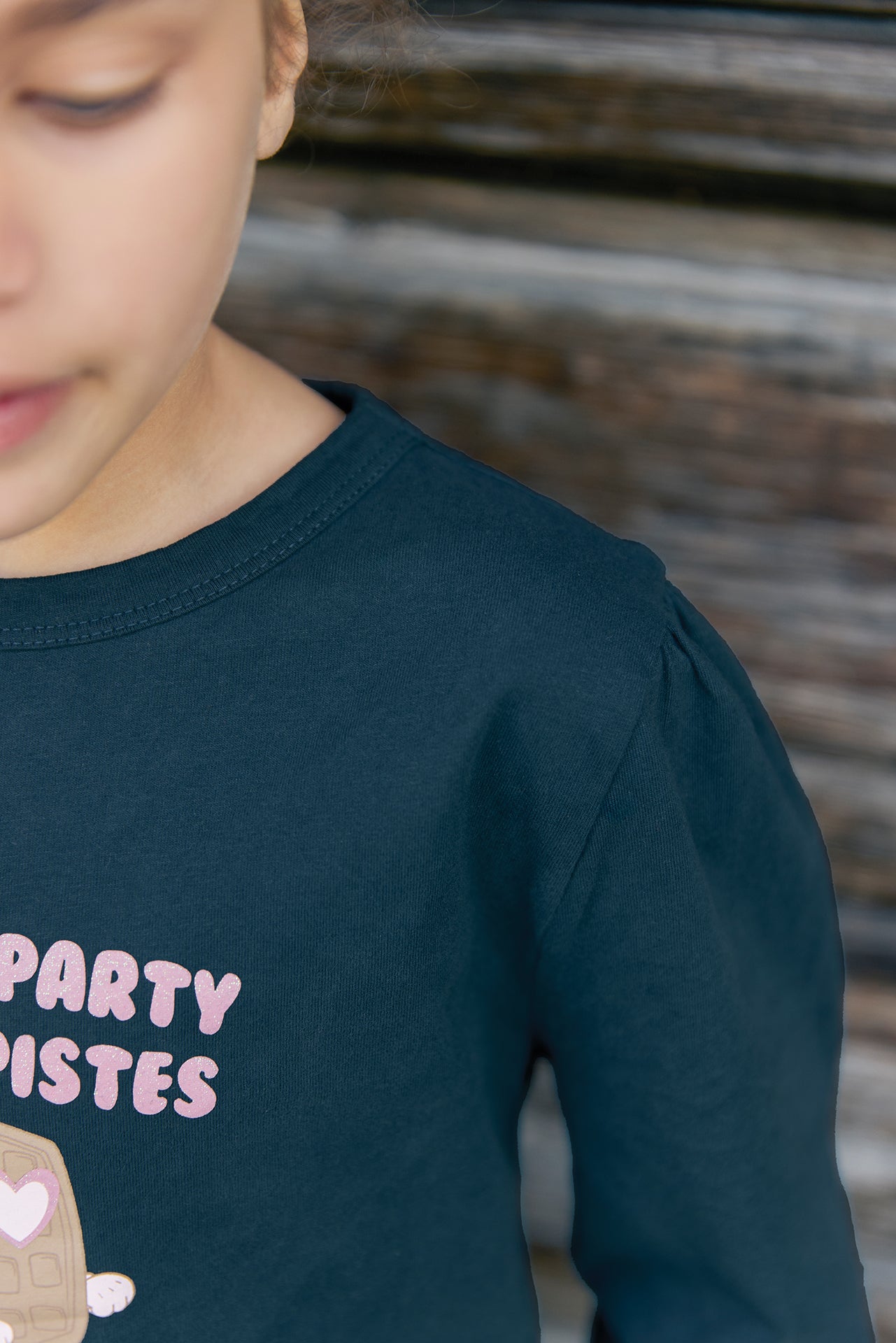 Le t-shirt Titty Waffle de la collection "Winter Tales" est un incontournable pour les petites exploratrices hivernales. En bleu lake, il évoque les paysages poétiques de l'hiver. Fabriqué en 100% coton, il offre chaleur et confort avec ses manches longues. L'illustration "waffles party" rose ajoute une touche ludique ! Parfait à associer avec un jean ou un pantalon en velours pour une journée d'aventure ou de détente.